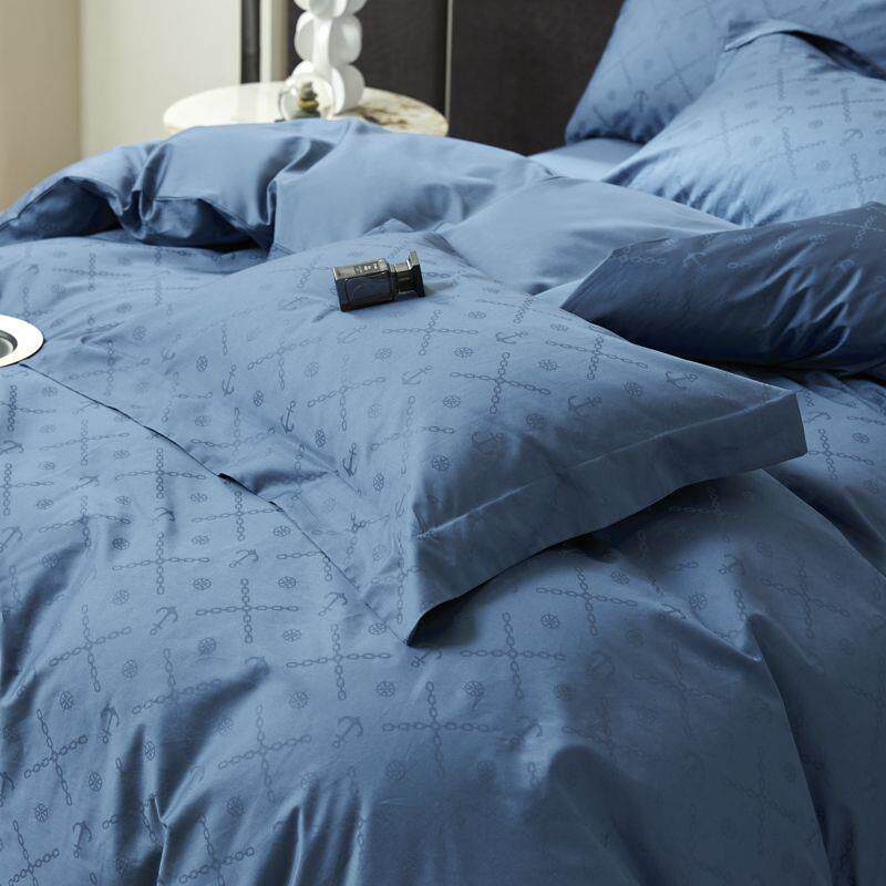 X05L高档出口24支双股长棉四件REV套全纯棉贡缎被棉套床单笠绒床
