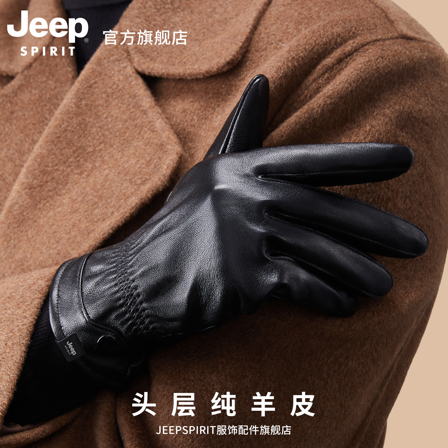 JEEP SPIRIT吉普男士绵羊皮手套冬季摩托车开车保暖防风手套男冬
