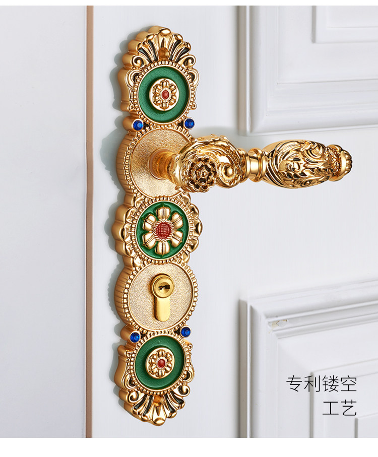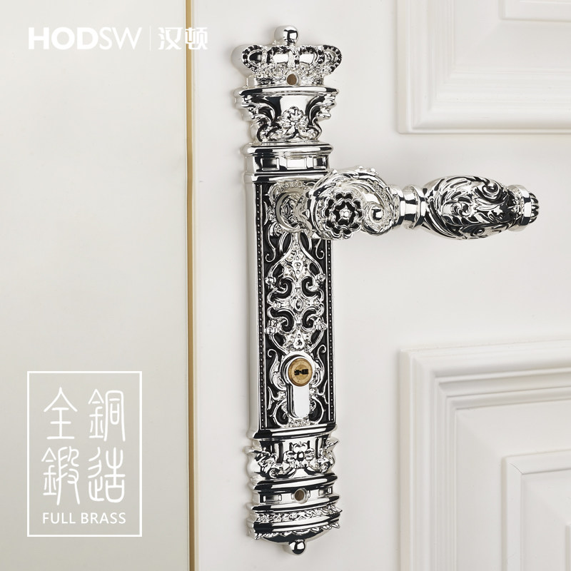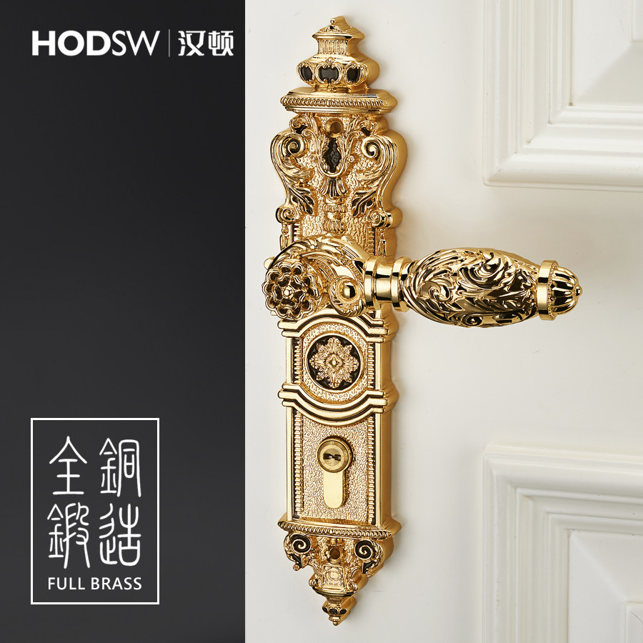 汉顿黄铜室内通用木门锁静音黄铜欧式别墅实木卧室门锁金色青古铜
