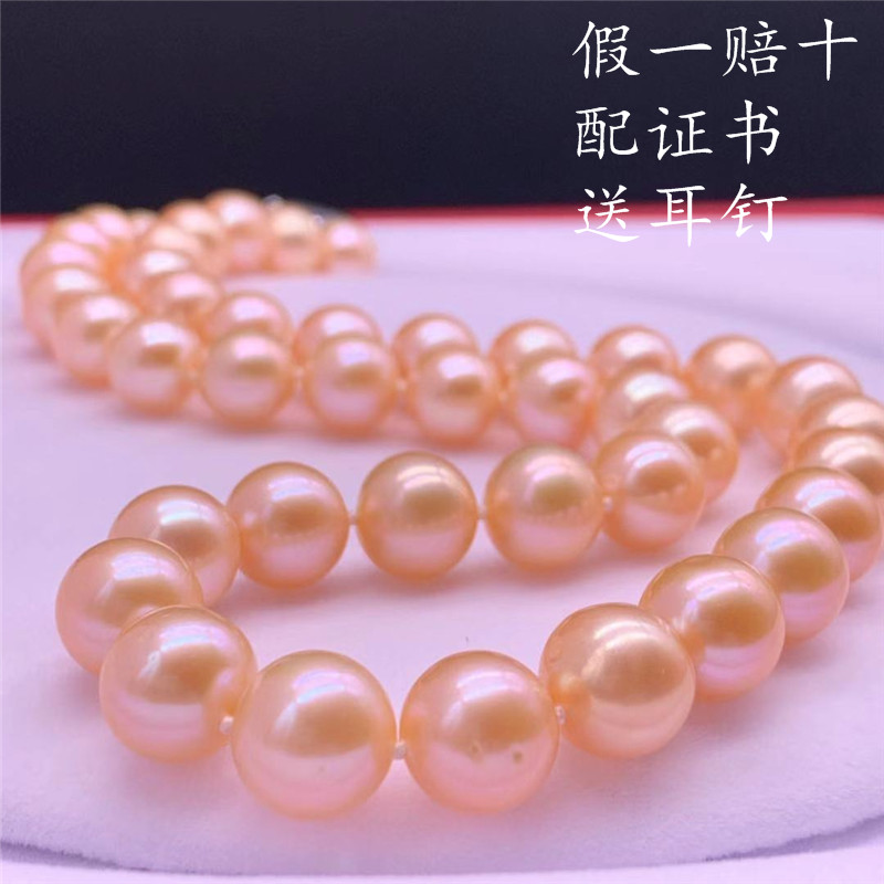 假一赔十正品纯天然淡水珍珠项链10-11mm圆形白色强光送妈妈婆婆