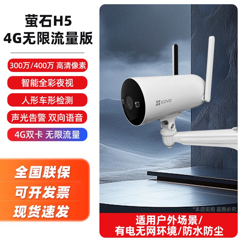 萤石H5摄像头4G免费流量高清家用户外无线WiFi监控枪机筒机摄影头