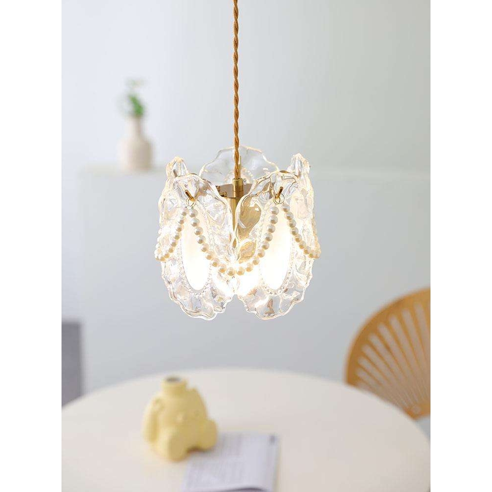 水晶吊灯奶油风设计感珍珠法式灯具现代简约温馨浪漫卧室床头主灯