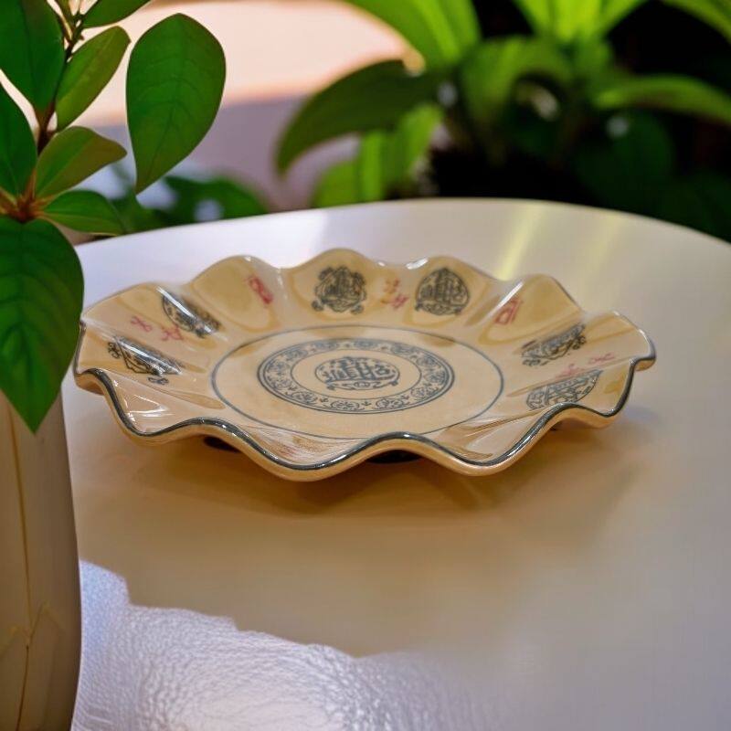 招财进宝荷叶边盘陶瓷炒菜盘子饭店用餐厅凉菜盘子商用创意水果盘