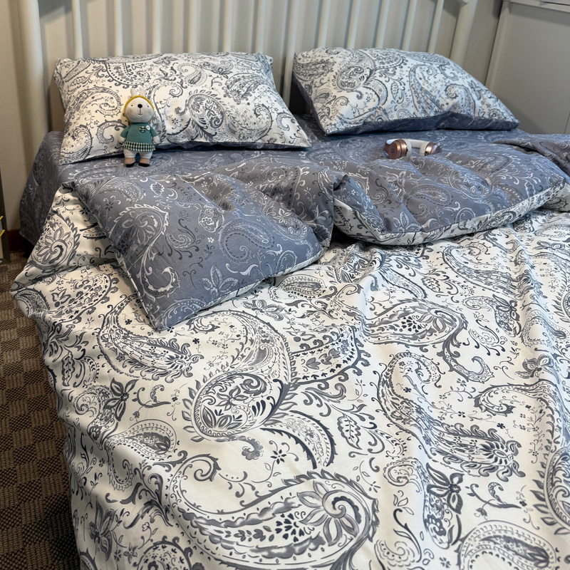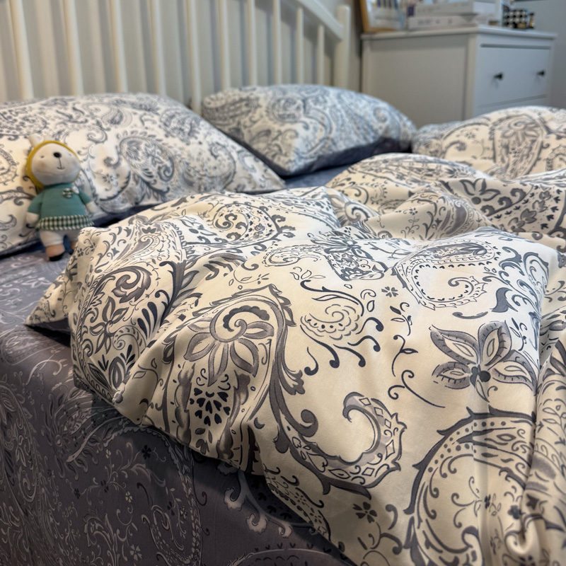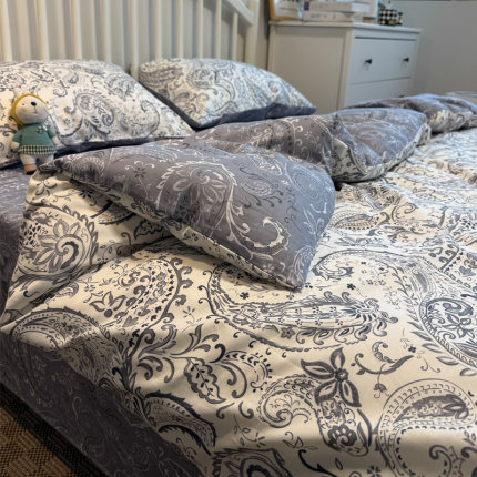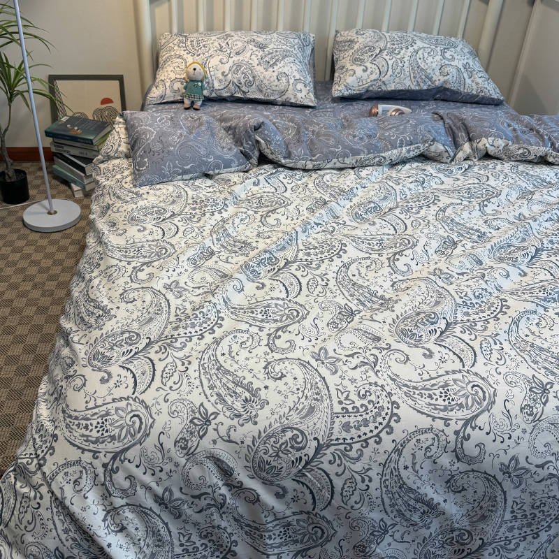 ins美式花纹全棉床上四件套纯棉1.5m1.8米被套床单床笠三件套床品