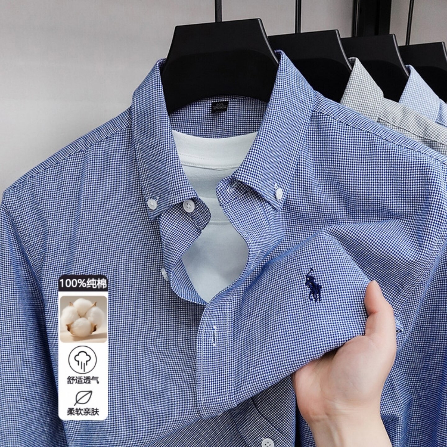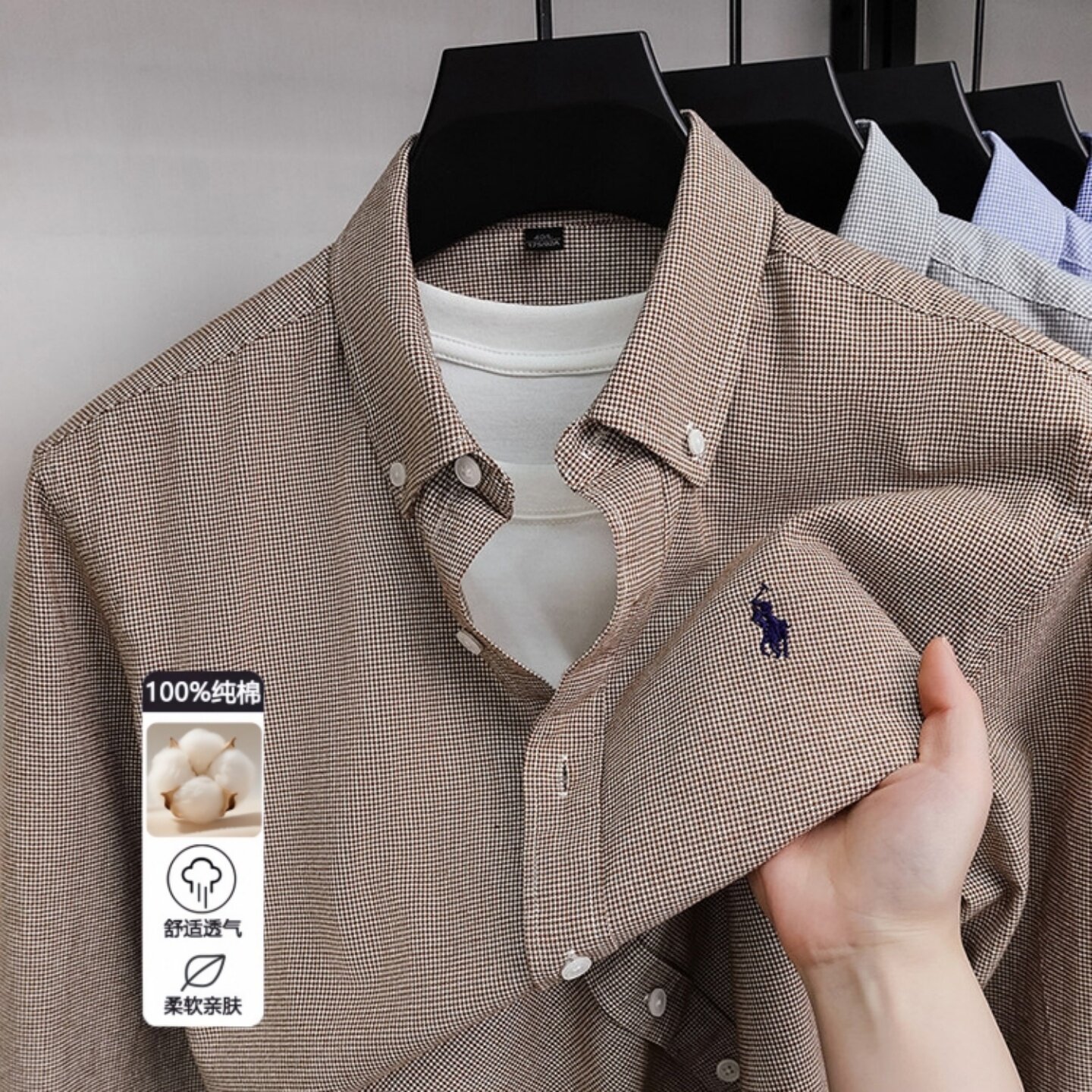 专柜同款男士新款纯棉马标衬衫