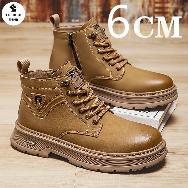 厚底增高马丁靴男高帮商务休闲皮鞋侧拉链秋季爆款内增高男鞋10cm