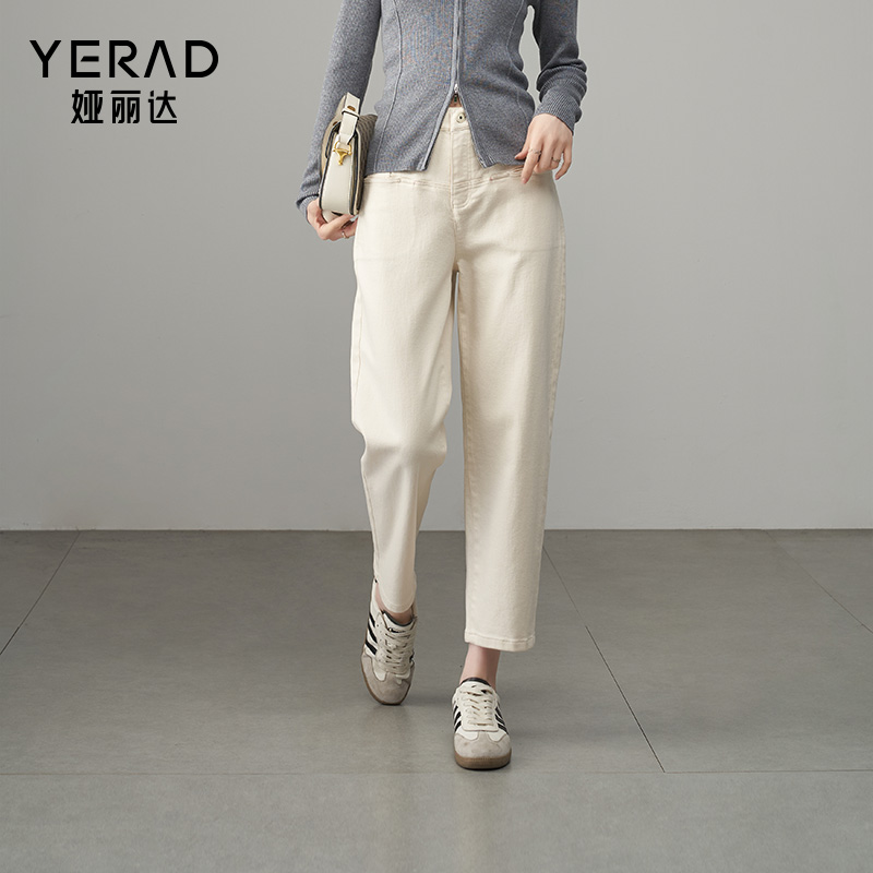 娅丽达三防棉质牛仔裤女秋季裤子2024新款白色小个子镰刀裤哈伦裤