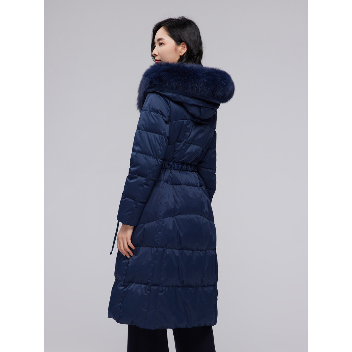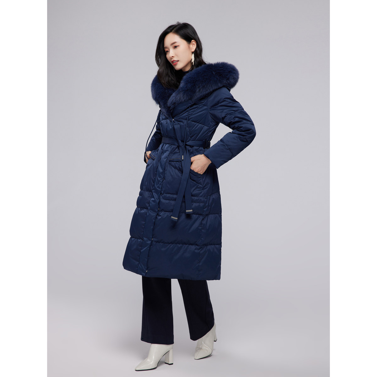 【商场同款】BBLLUUEE粉蓝衣橱2025冬气质狐狸毛领连帽厚羽绒服女