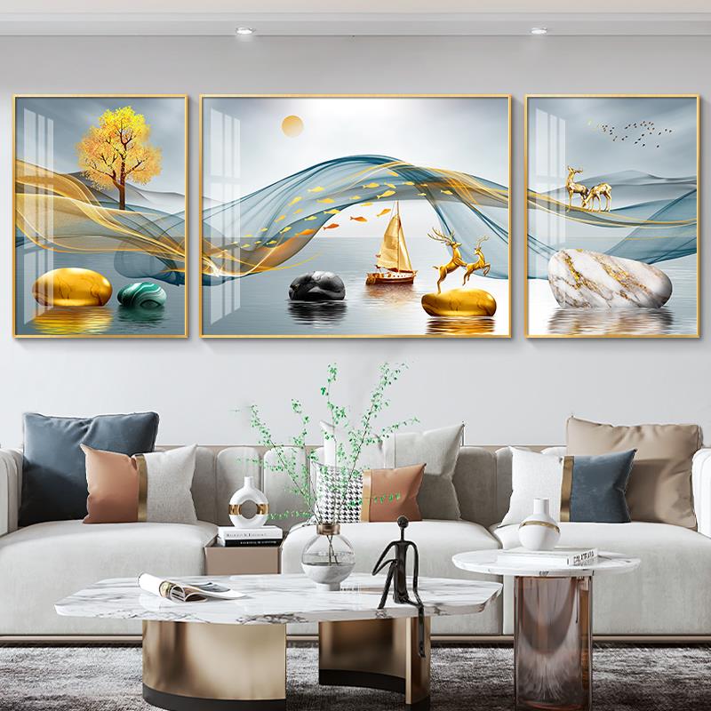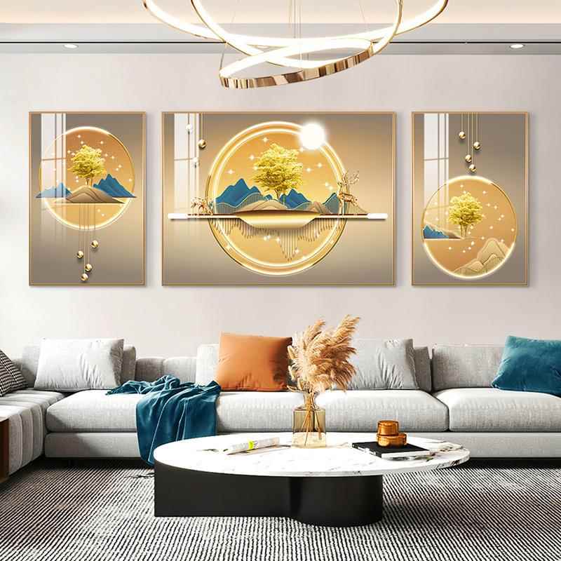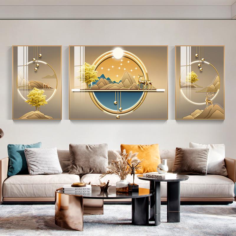 现代简约客厅装饰画沙发背景墙挂画高档大气2025新款轻奢三联画
