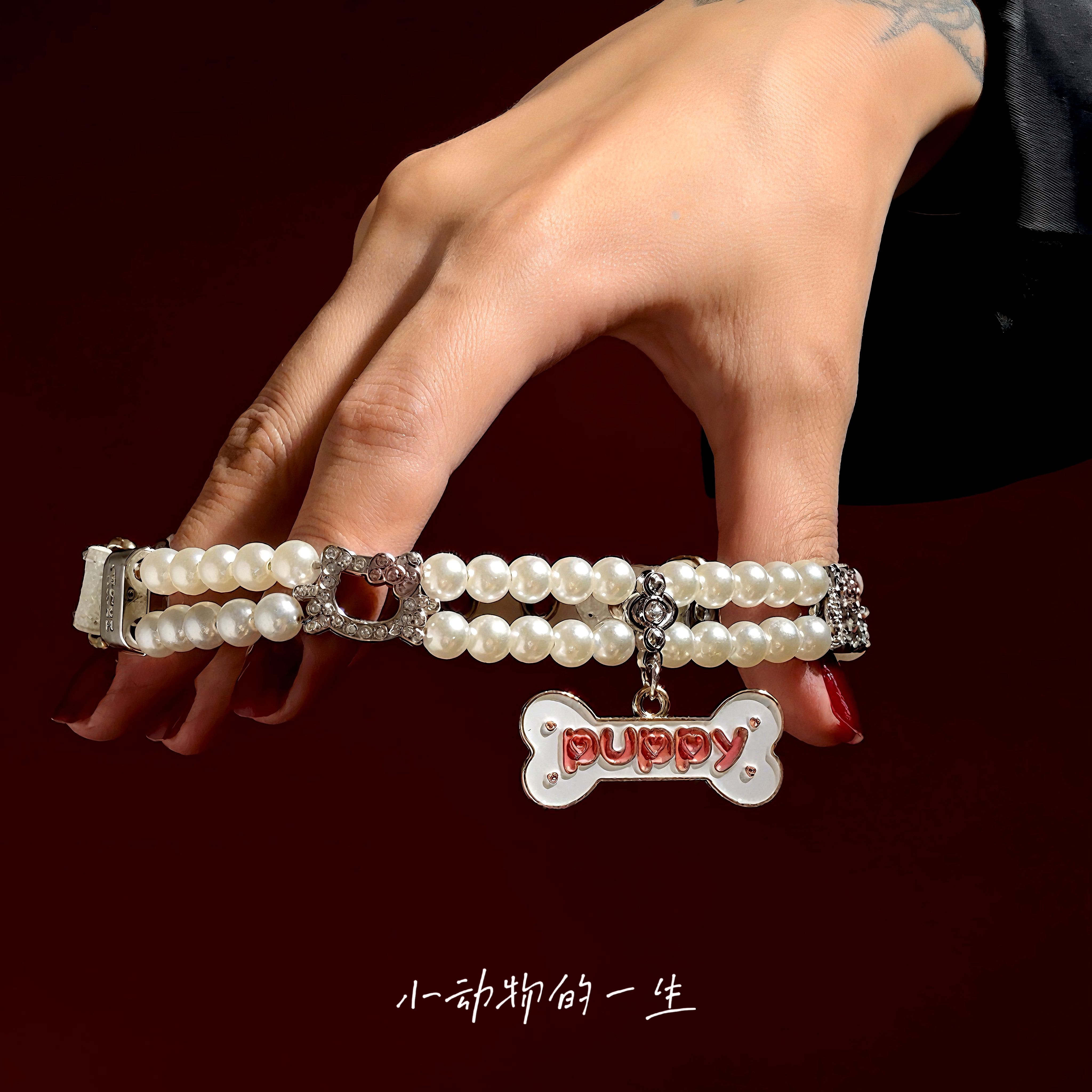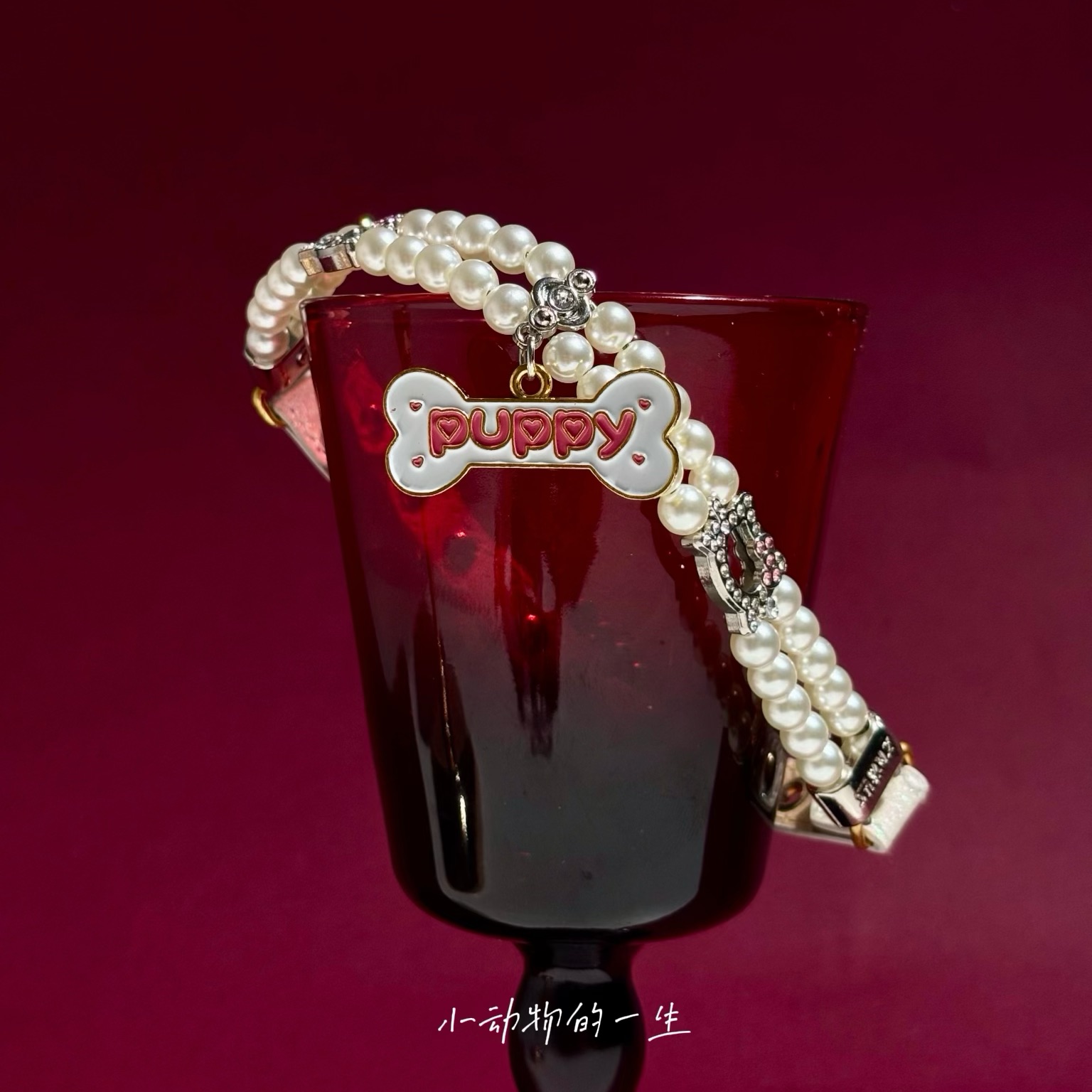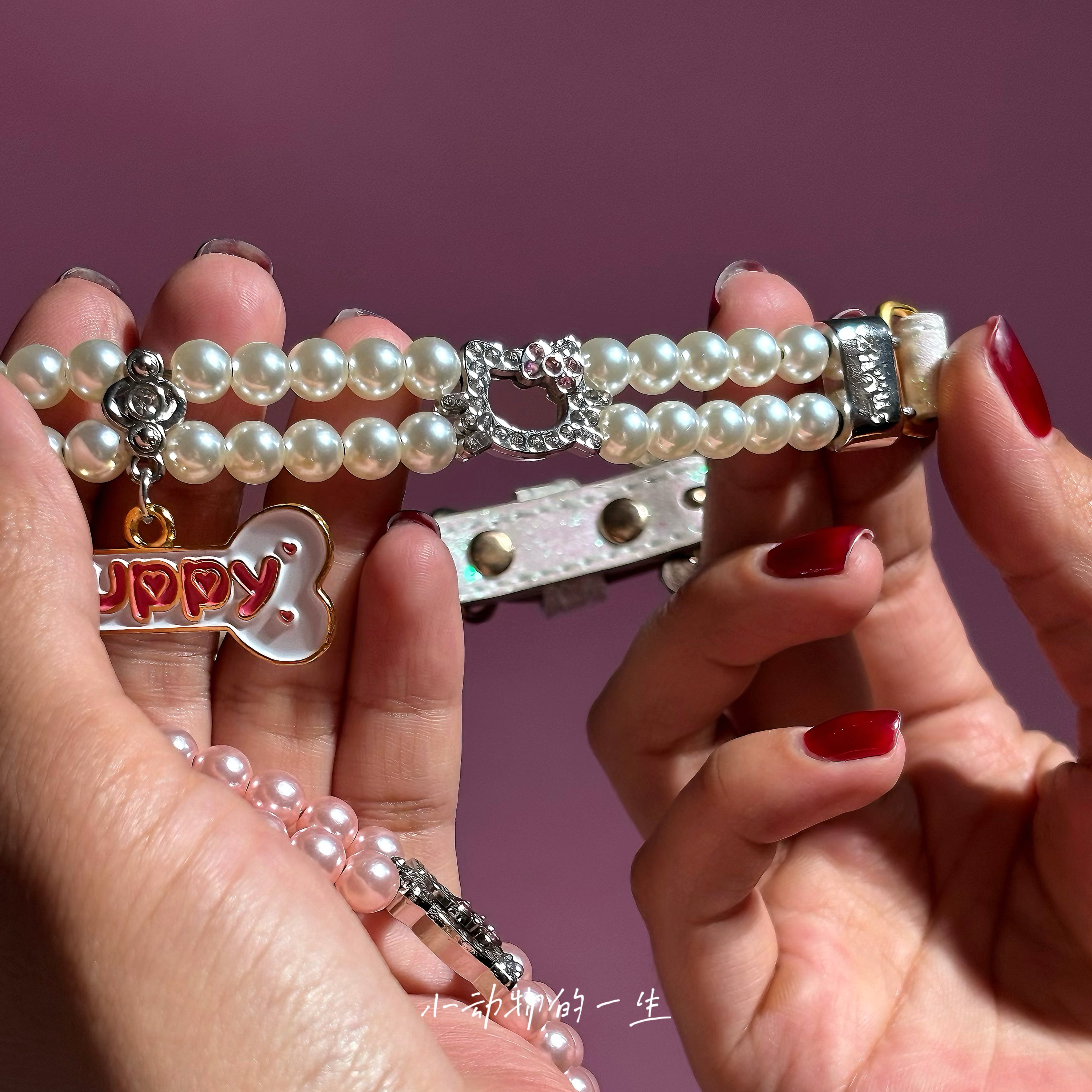 项链项圈珍珠狗牌牵引绳颈带链子颈锁骨颈环粉色脖子可爱小puppy