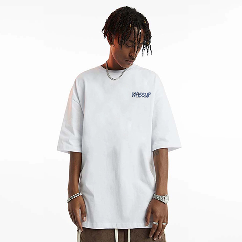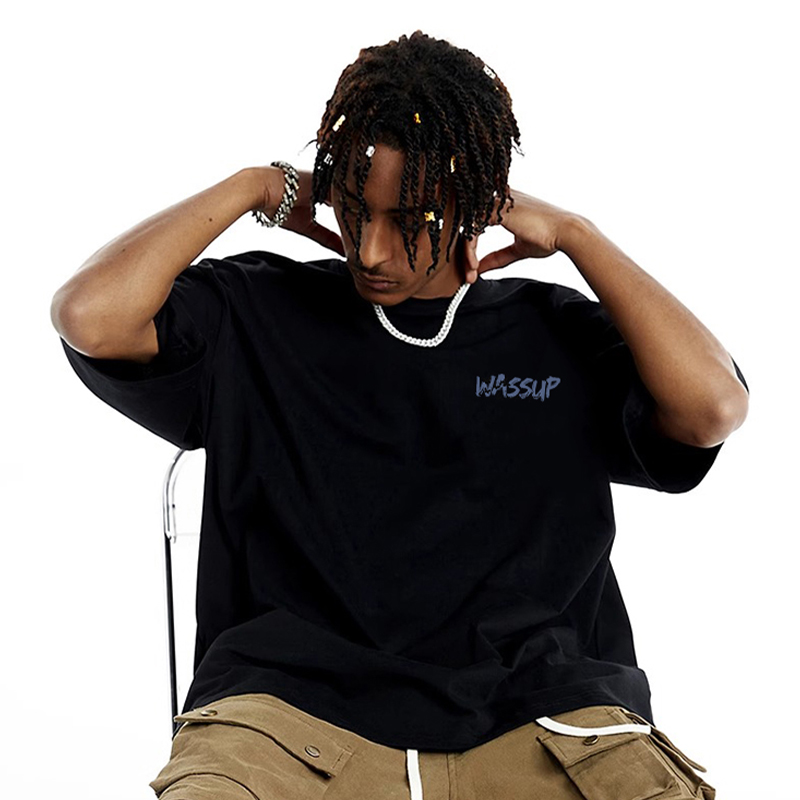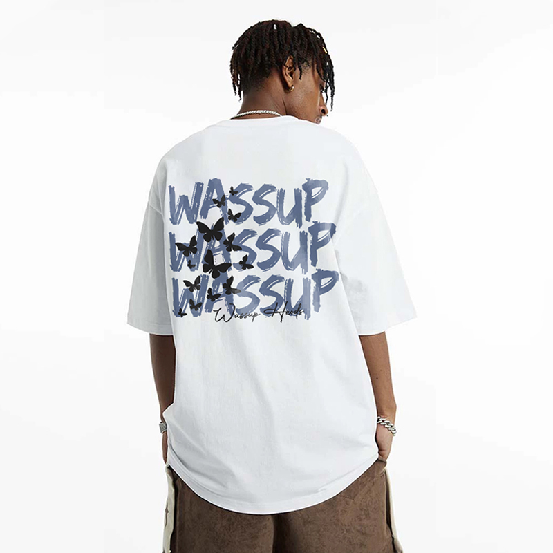 WASSUP蝴蝶绘画字母T恤短袖男夏季新款潮牌重磅纯棉圆领体恤上衣