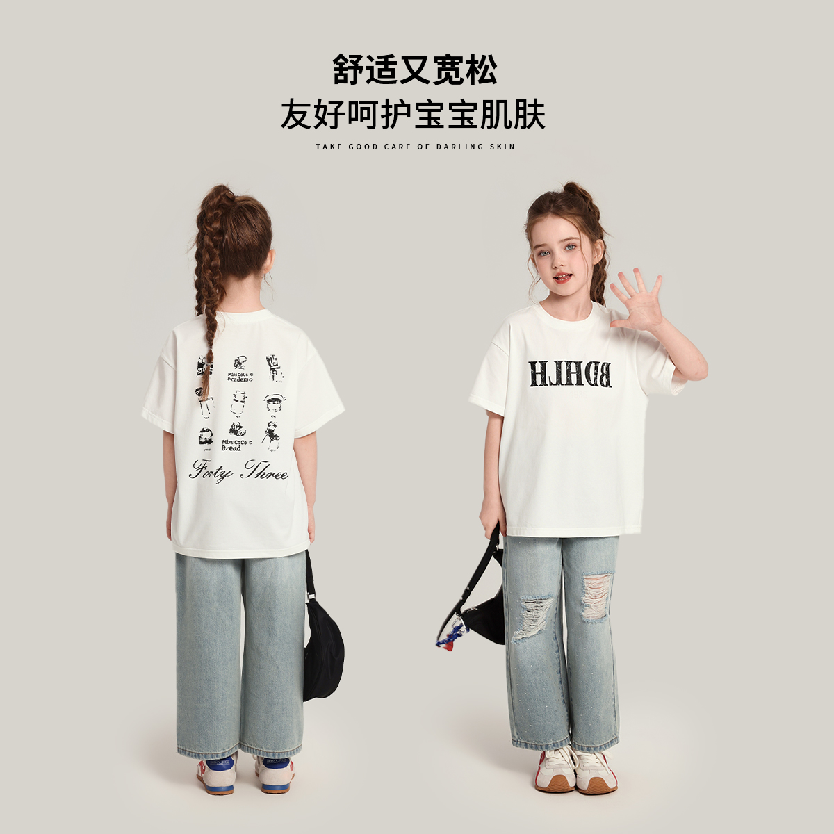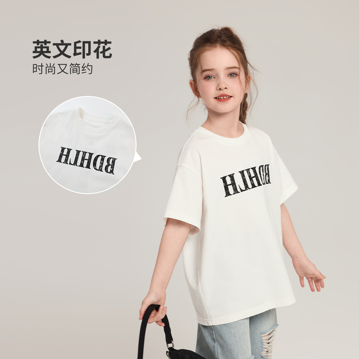 布丁哈鲁童装夏装女童圆领短袖2025新款儿童洋气宽松印花半袖T恤