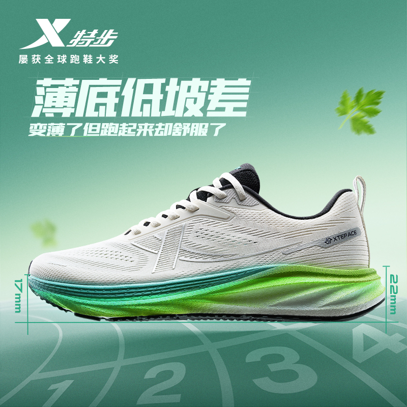 特步薄底香菜丨跑步鞋男秋季路跑鞋运动鞋赤足楦低坡差训练跑女鞋