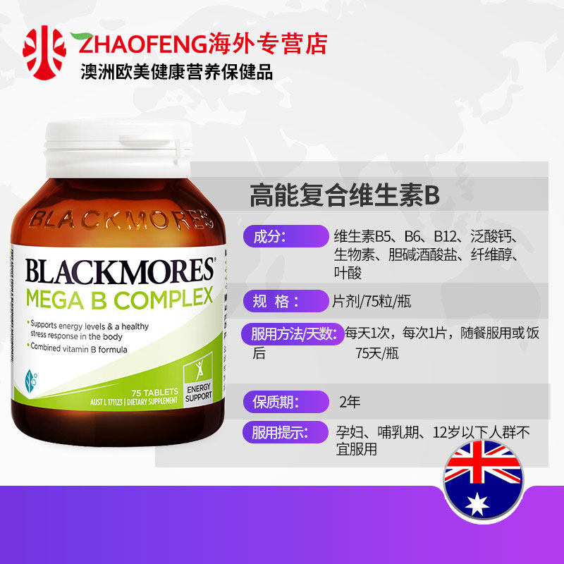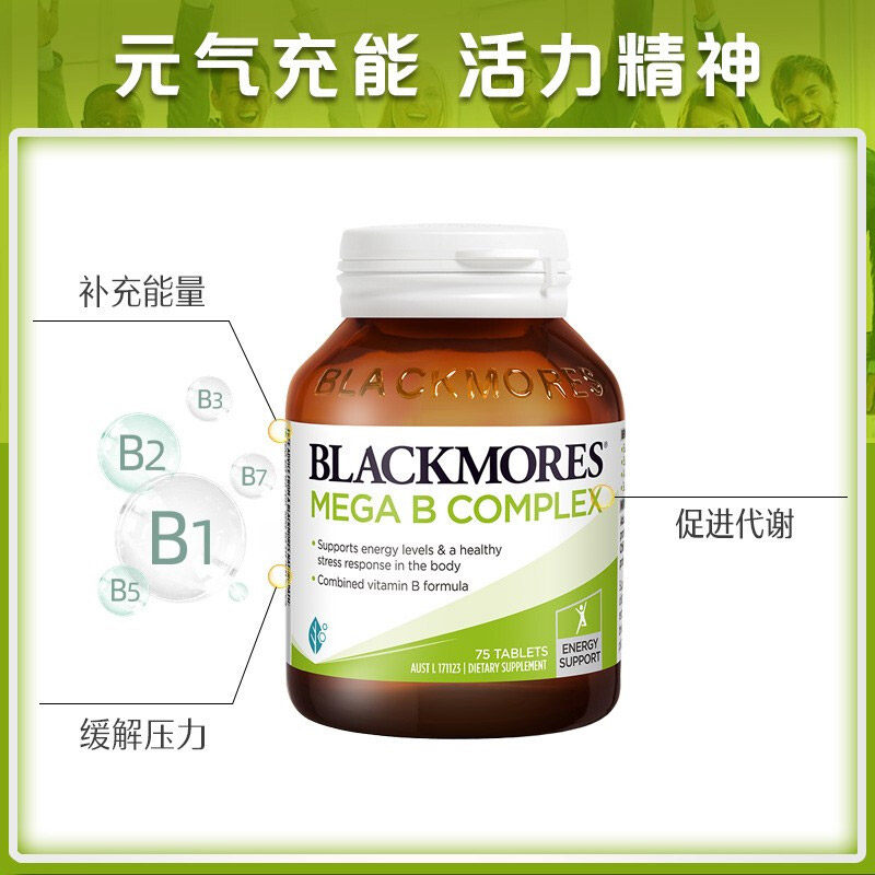 澳佳宝BLACKMORES复合维生素B族75粒高能成人熬夜复合b1b3b6b12