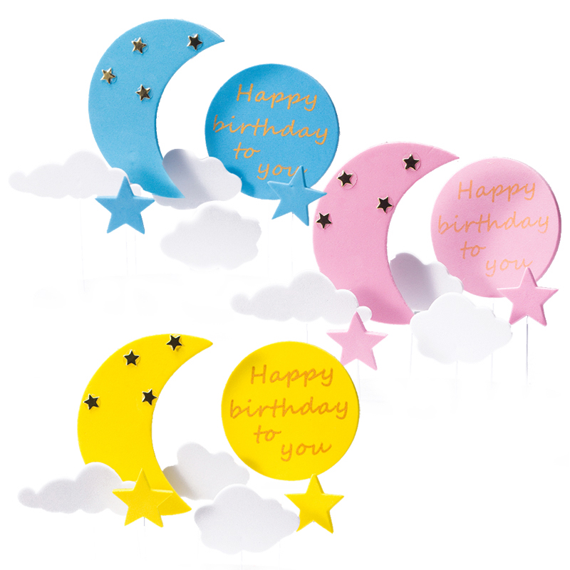 10个装毛球云朵蛋糕装饰立体热气球月亮白云生日插件插牌派对装扮