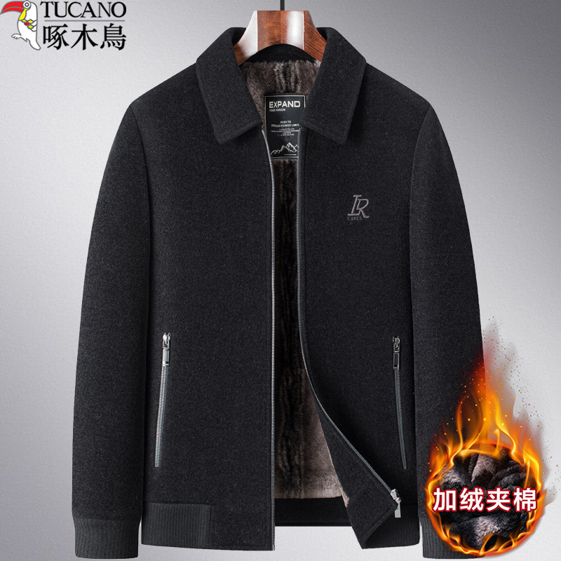 啄木鸟中年男士外套夹克衫加绒加厚款秋冬季中老年人棉衣服爸爸装