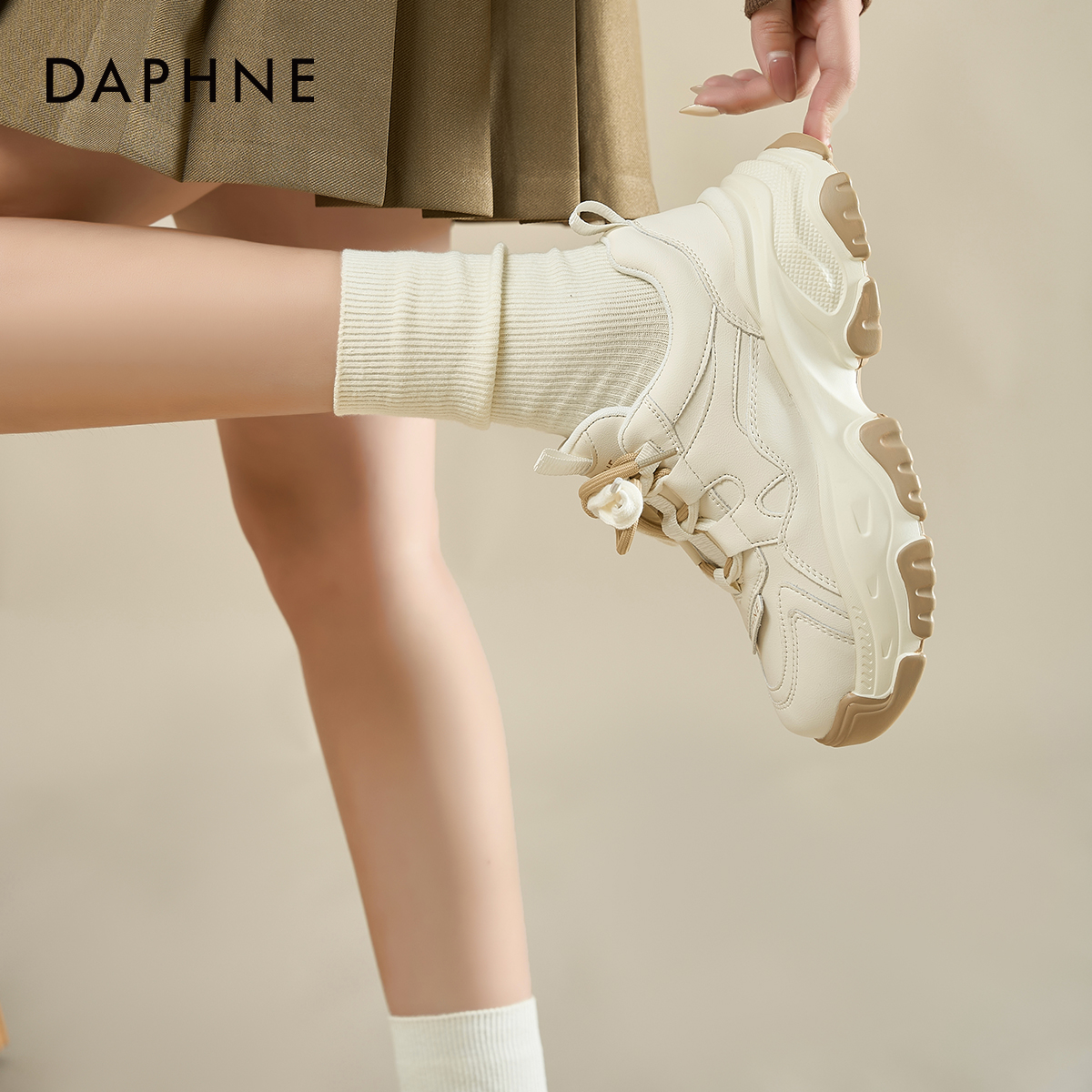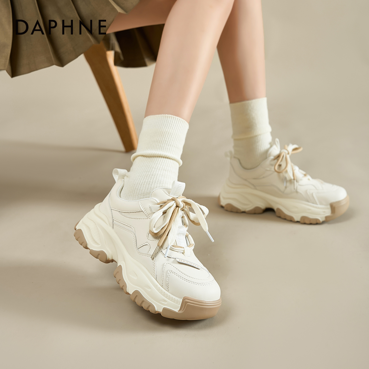 达芙妮厚底老爹鞋休闲增高小白鞋