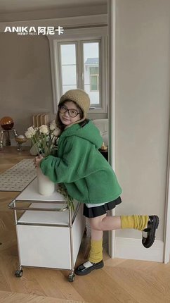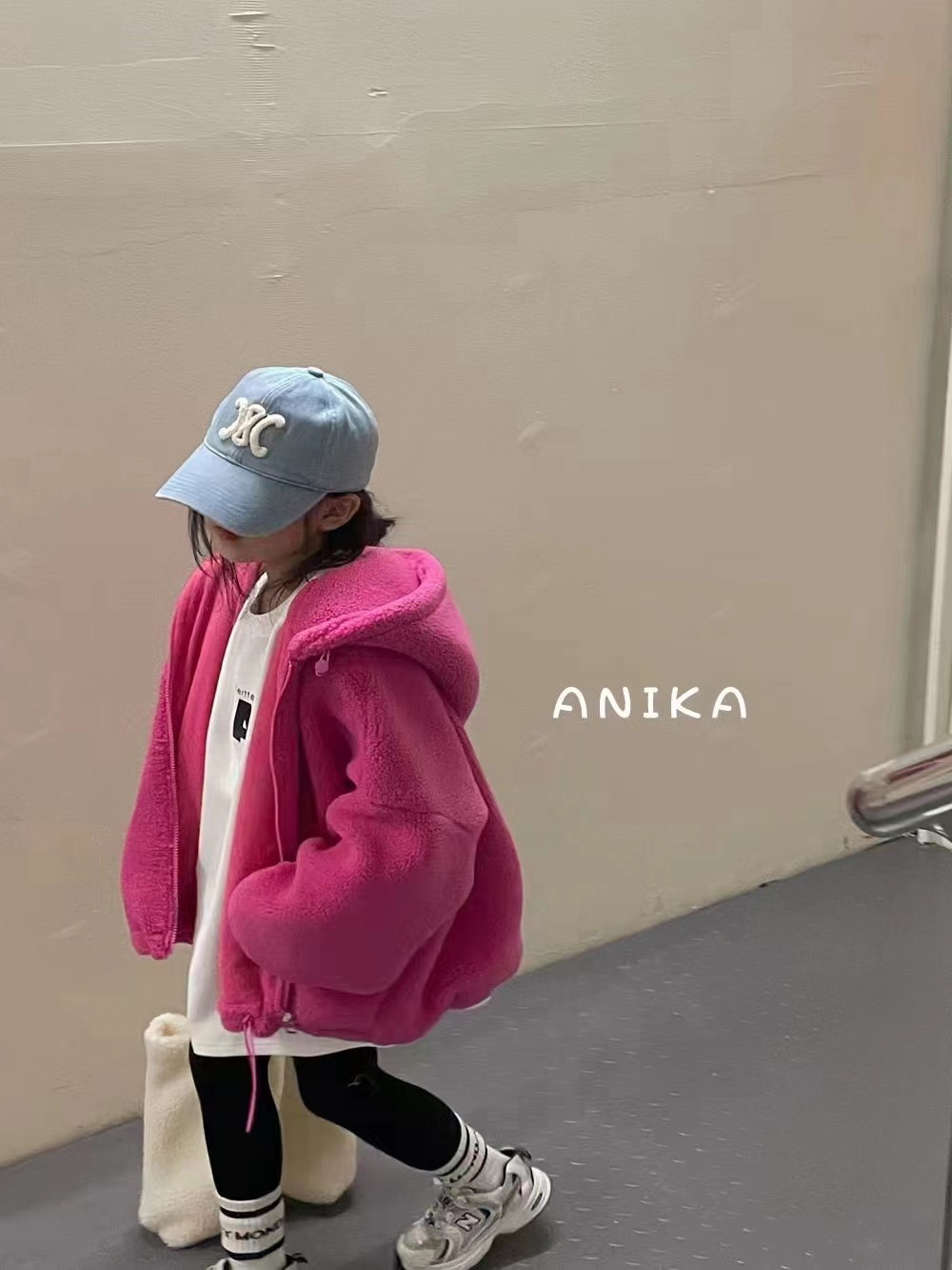 阿尼卡品牌童装冬装新款女童洋气加厚毛毛带帽保暖夹克外套潮