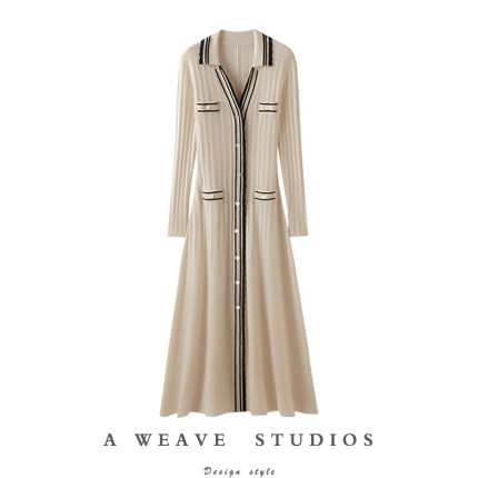 太喜欢这个型了!v领羊绒衫女中长款纯羊绒毛衣针织连衣裙子