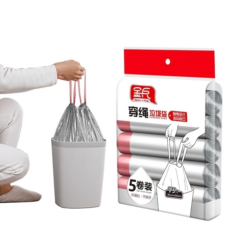 金兵轻奢豪华加厚垃圾袋特厚抽绳大卷耐用家用一次性塑料垃圾袋