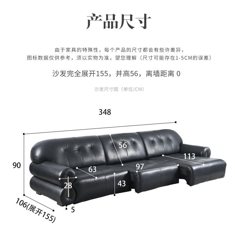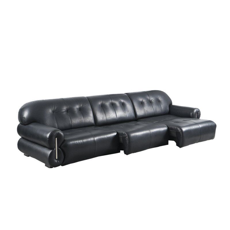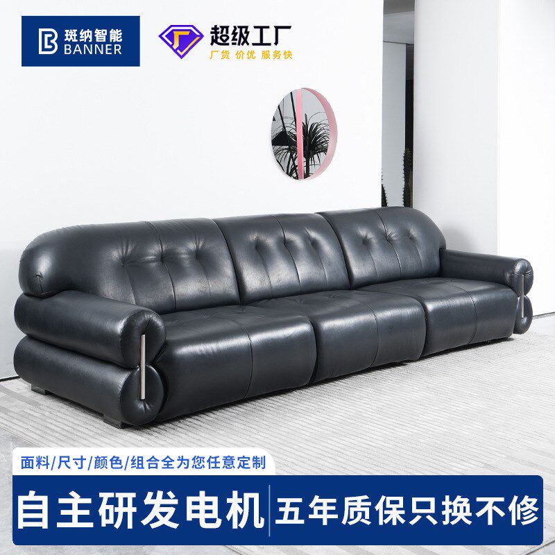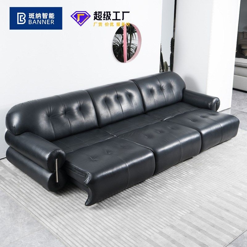 意式极简黑色皮艺黑糖沙发法式复古小户型轻奢中古风电动沙发床