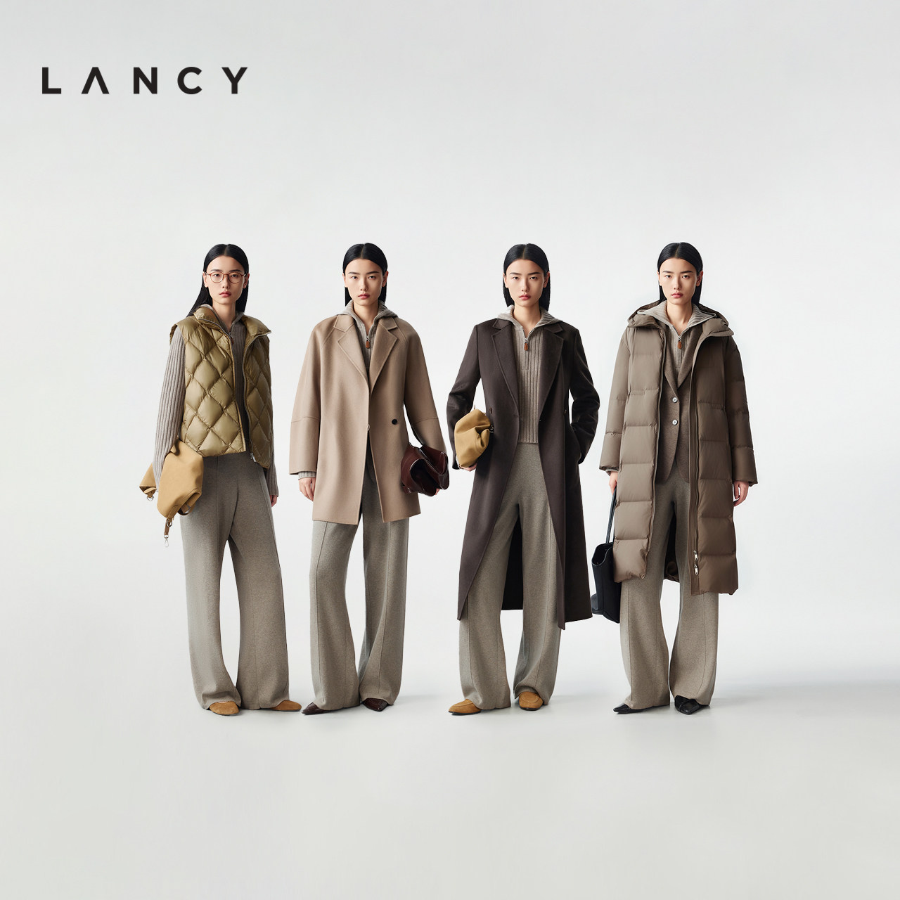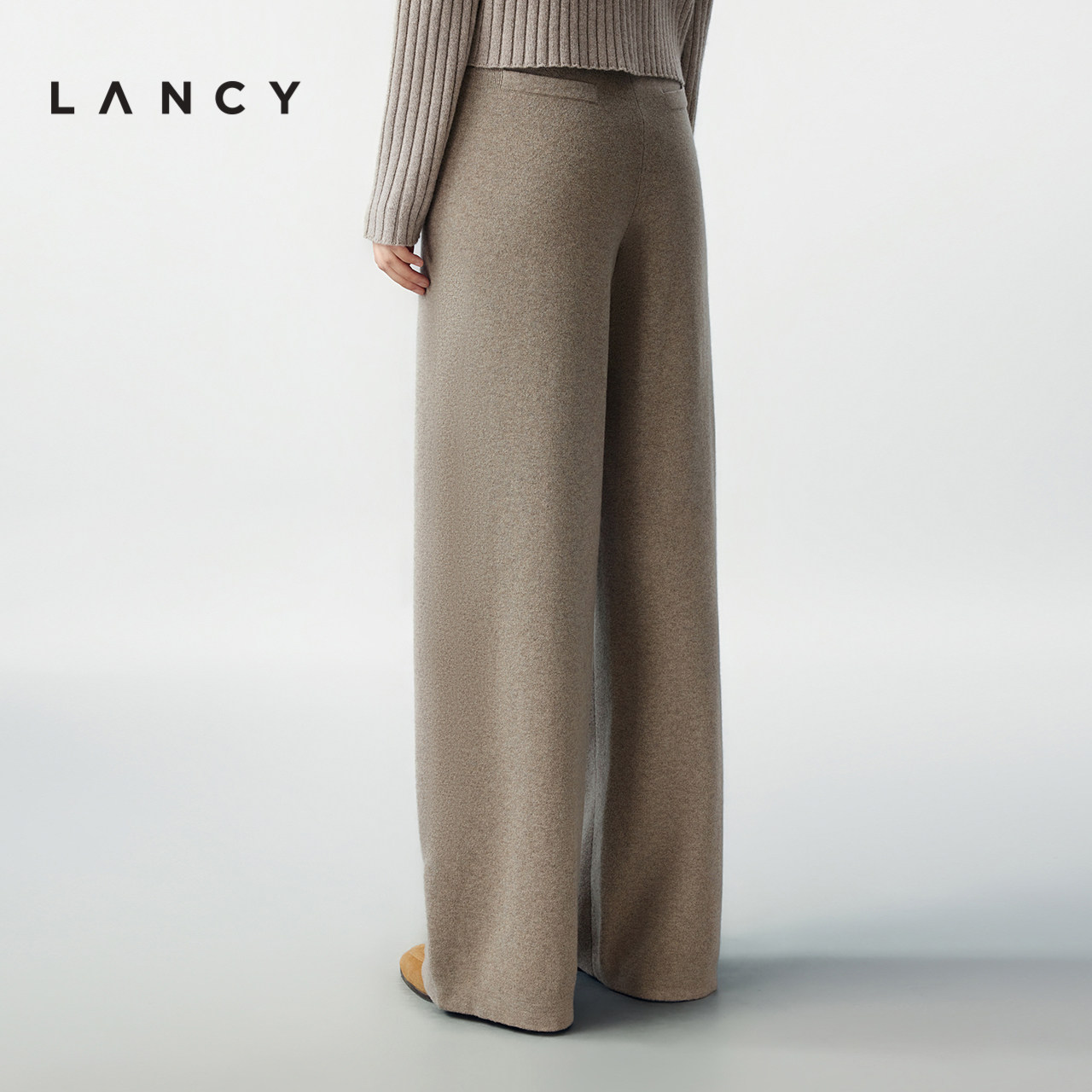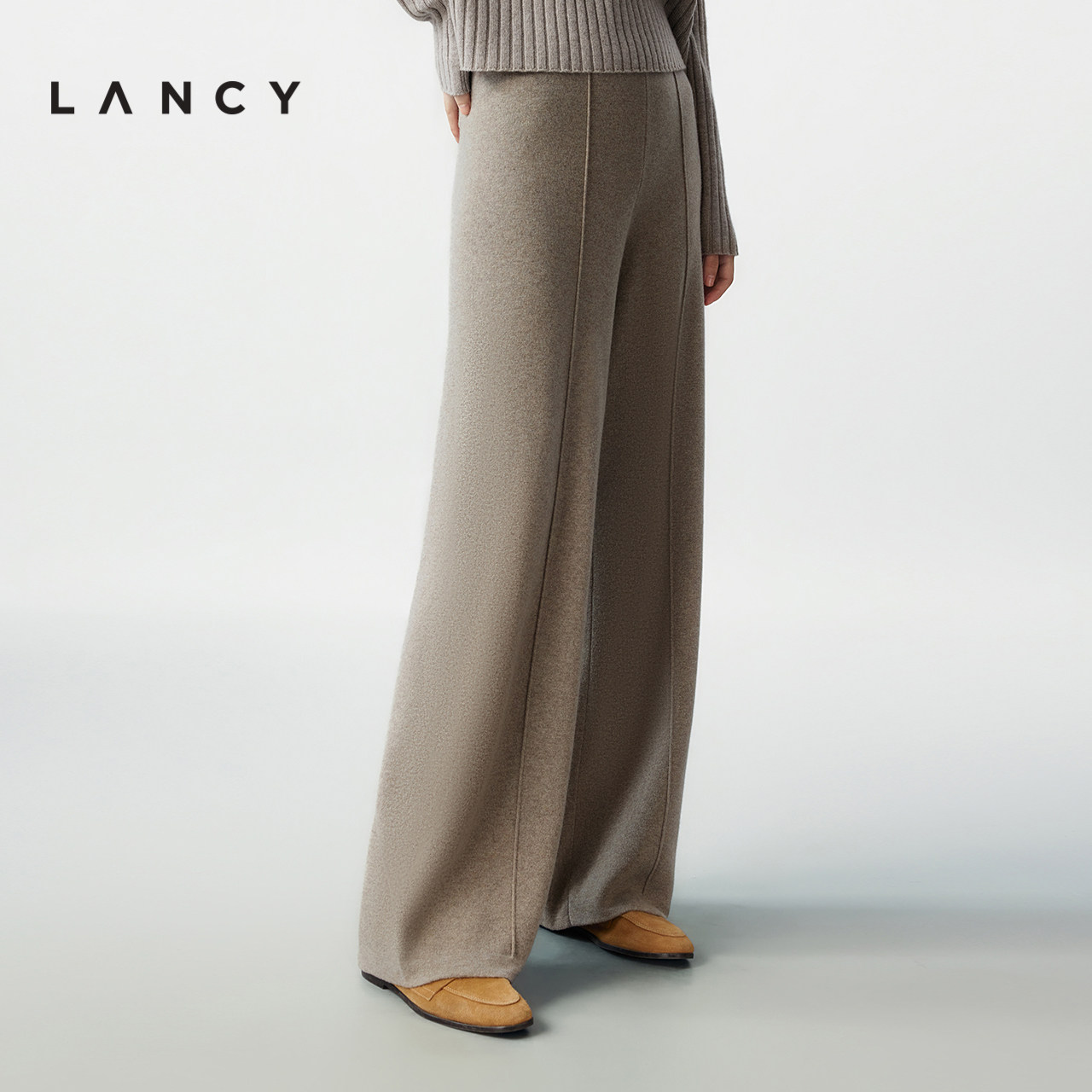 【羊毛羊绒】LANCY/朗姿2025冬季新款老钱风直筒针织休闲裤长裤女