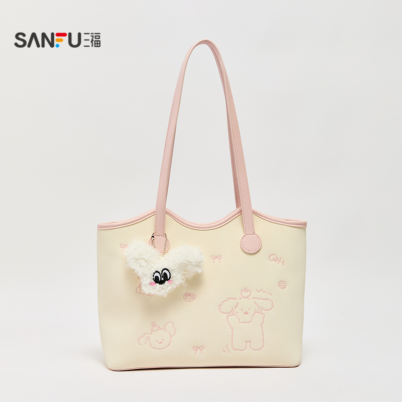 三福挎包夏季元气少女小狗压印毛绒玩偶挂件托特包女包500711