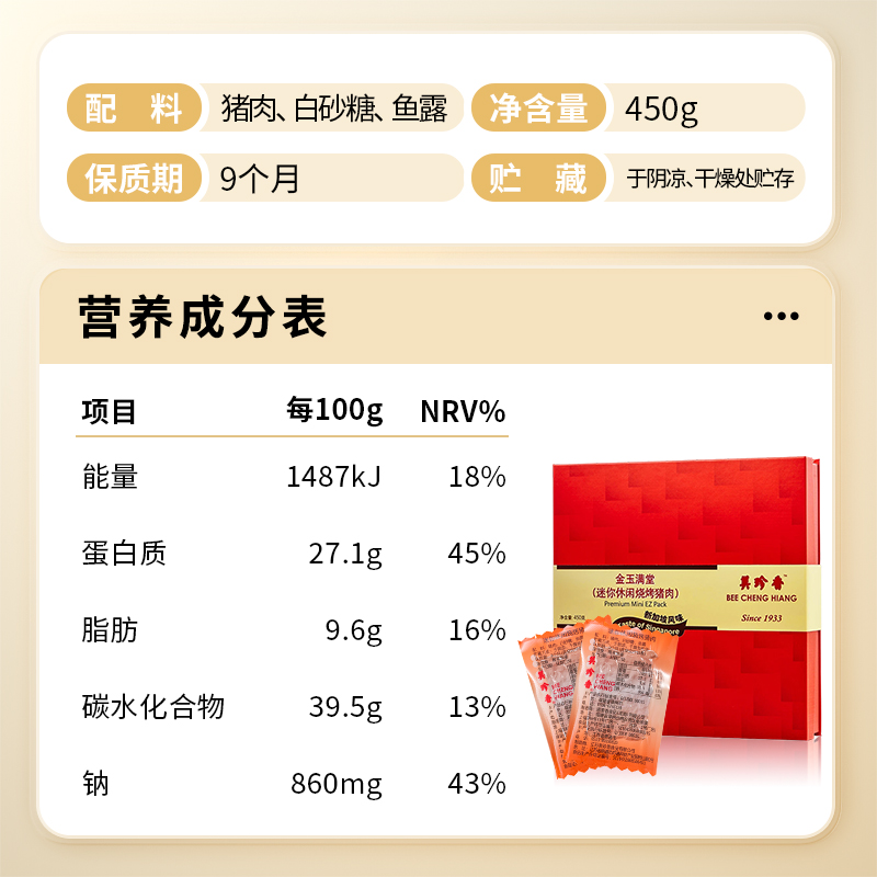 美珍香金玉满堂肉脯礼盒450g*1盒