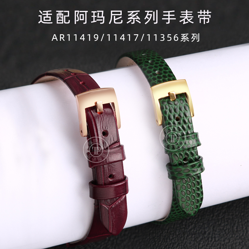 适配阿玛尼ROSA满天星玫瑰小圆盘小绿表女AR11419真皮手表带表链
