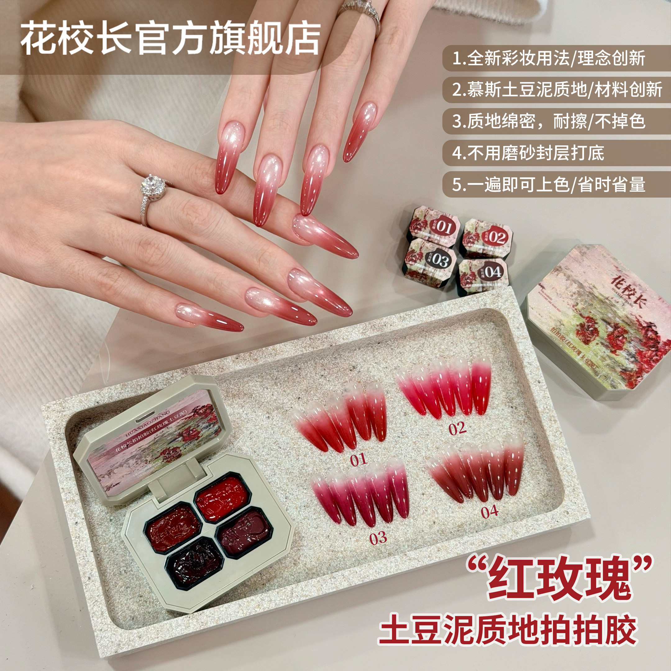 【花校长】免洗红玫瑰土豆泥质地耐擦拍拍胶彩绘胶浓稠晕染美甲油