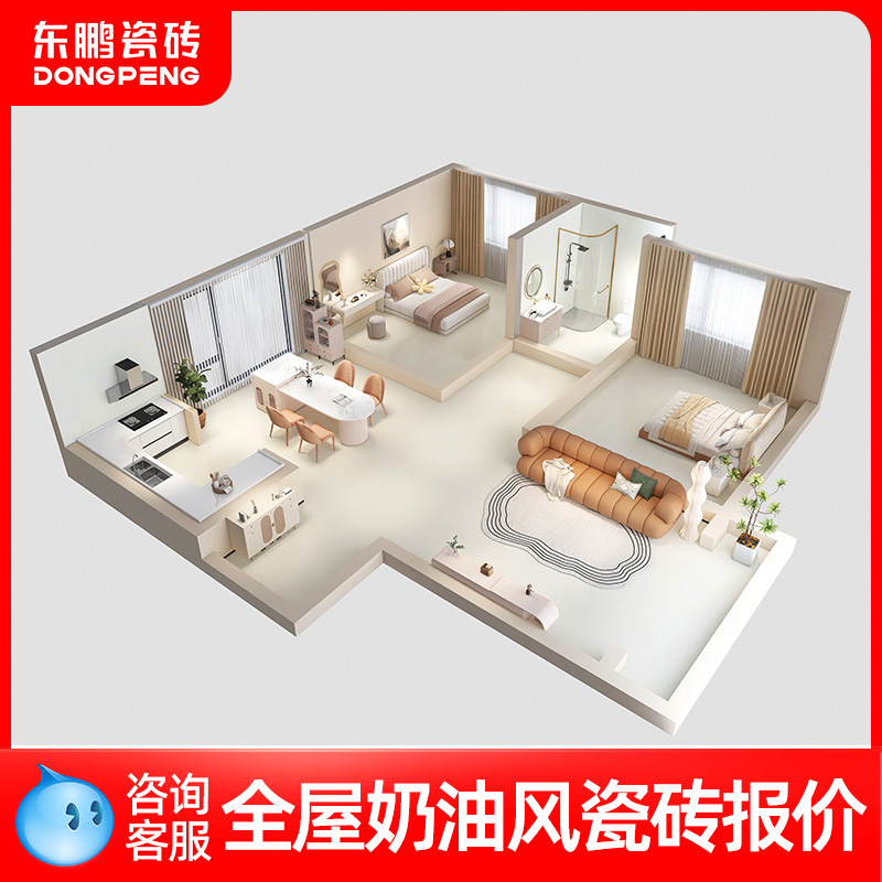 全屋奶油风东鹏瓷砖客厅地砖800x800瓷砖地板砖800x400墙砖卫生间
