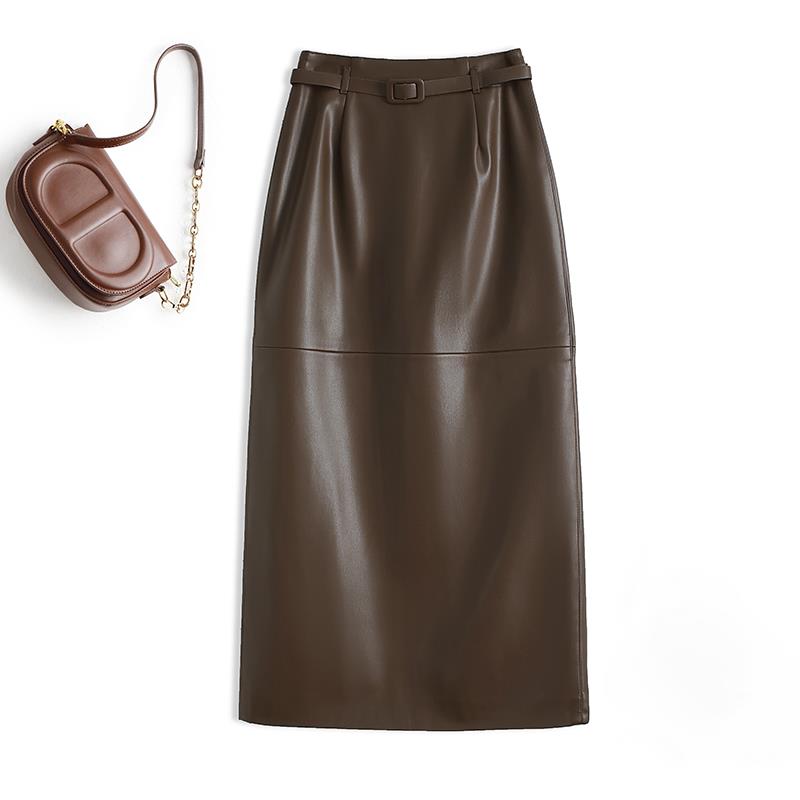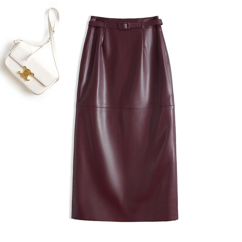 真皮皮裙女中长款包臀裙显瘦气质