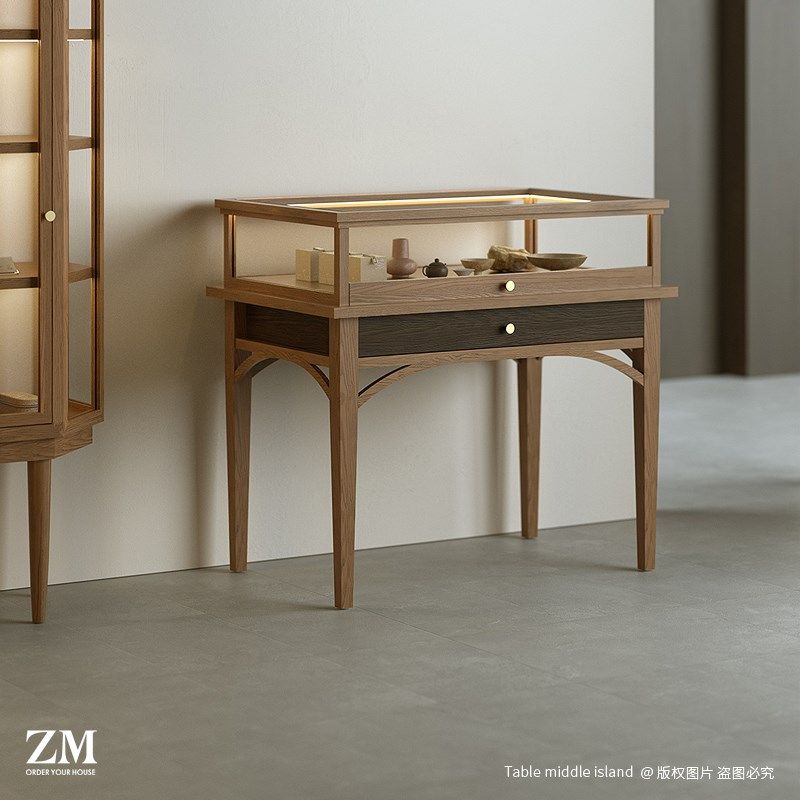 玻璃柜带灯带锁精品首饰展示柜珠宝玉器银饰陈列柜中古风店铺道具
