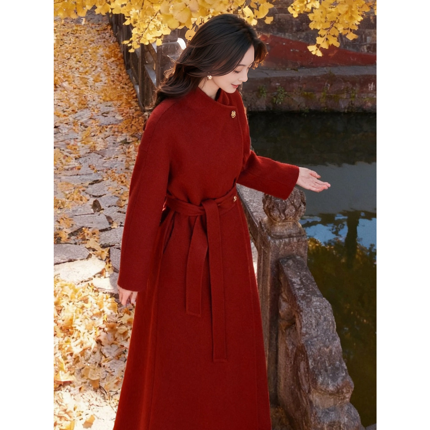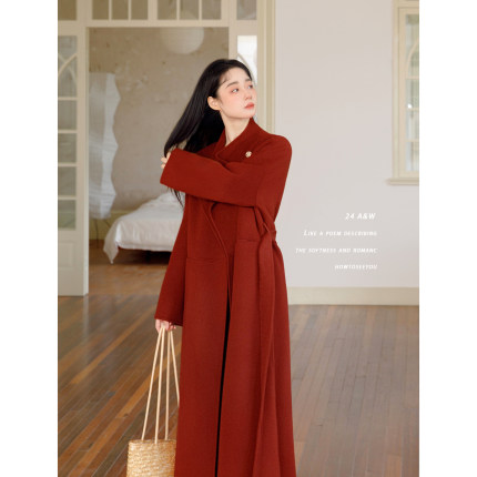 何衣见友《甜梦》秋冬新年氛围红色100双面羊毛大衣手缝外套春节
