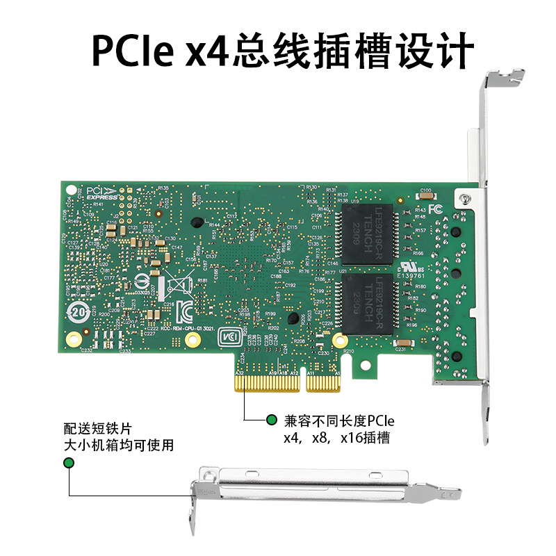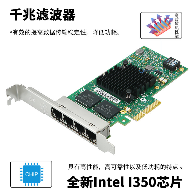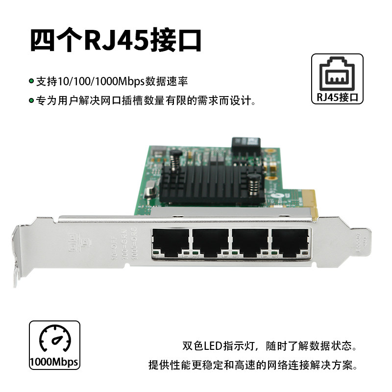 乐扩 INTEL千兆网卡I350T4四口PCIE软路由X4电口服务器4口汇聚工业相机