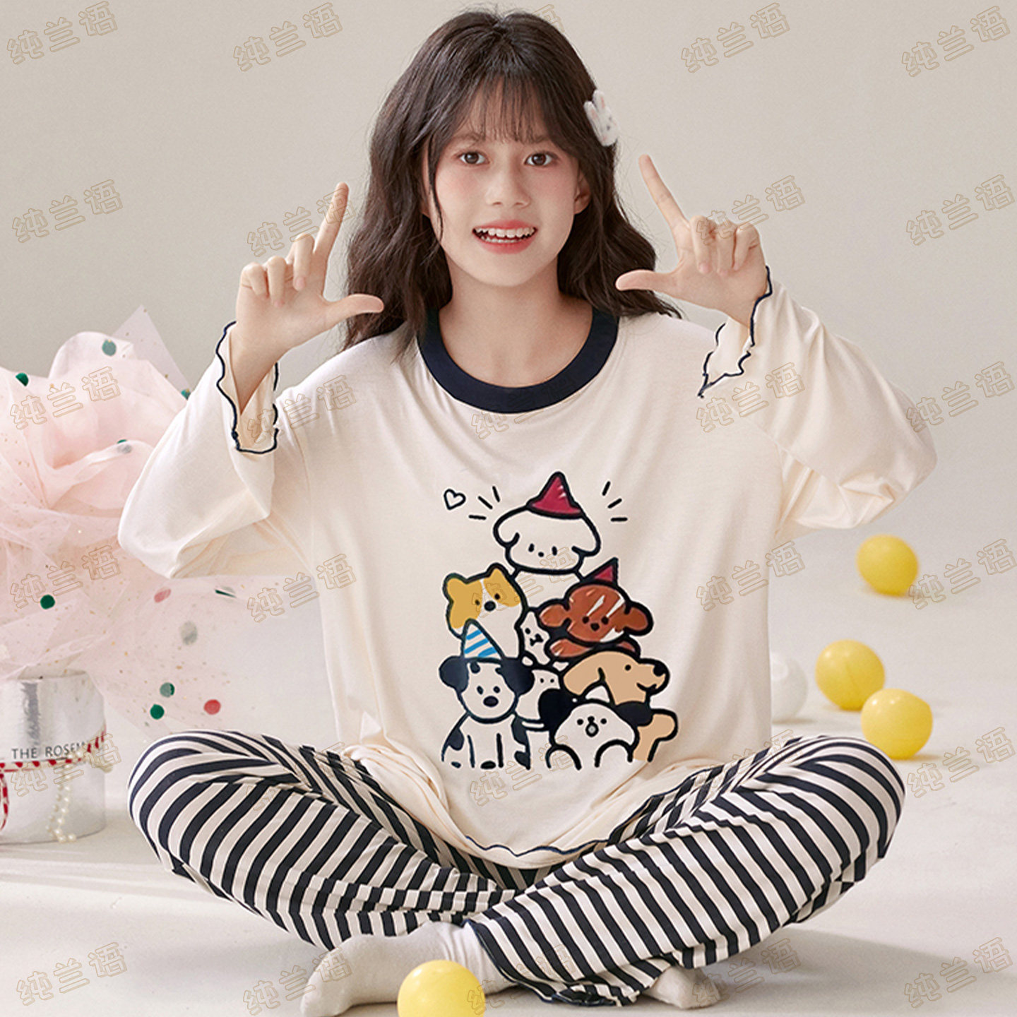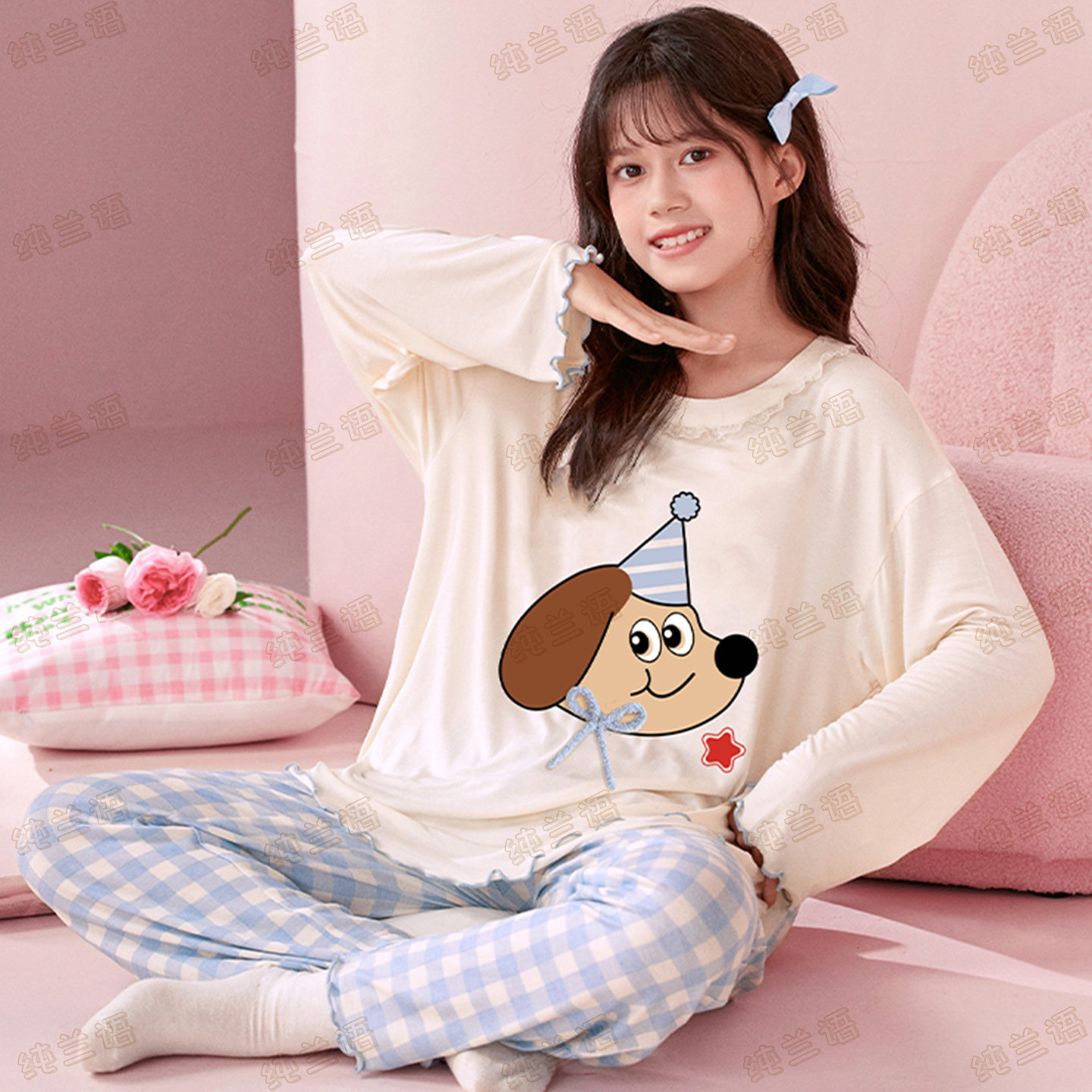 儿童睡衣女莫代尔长袖带胸垫套装