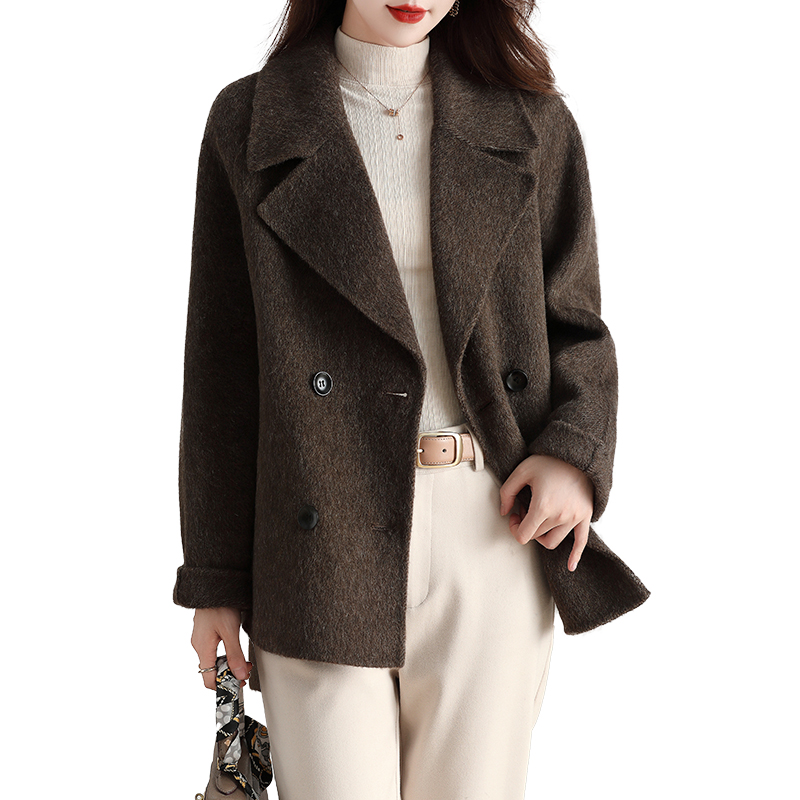 高端双面绒大衣女中长款韩版加厚羊毛呢骆驼绒西装领气质外套秋冬