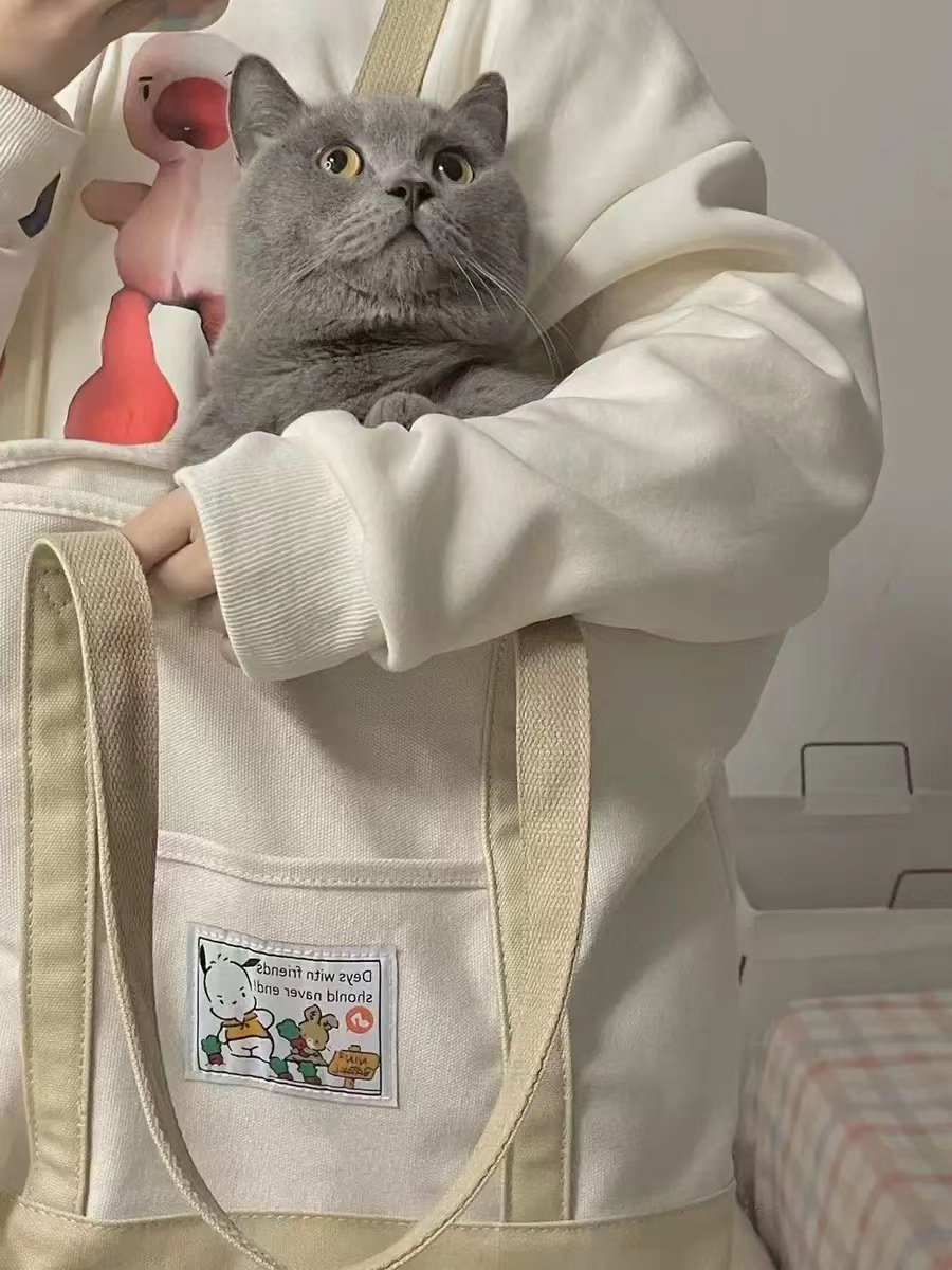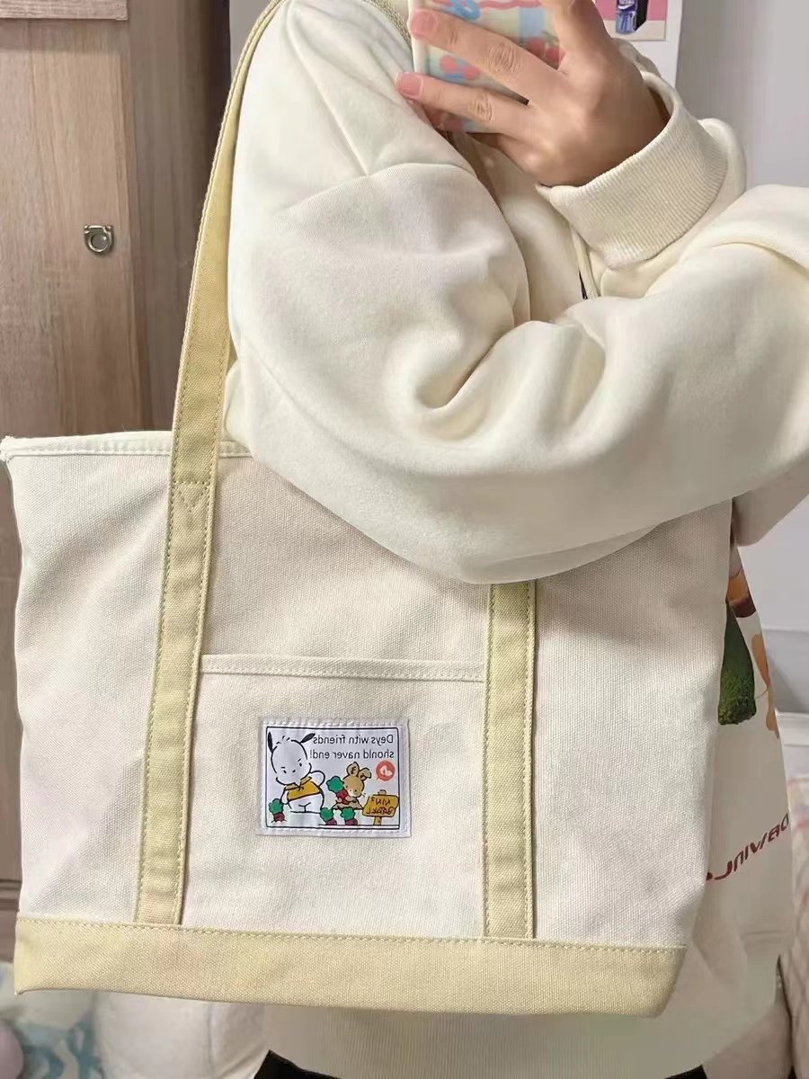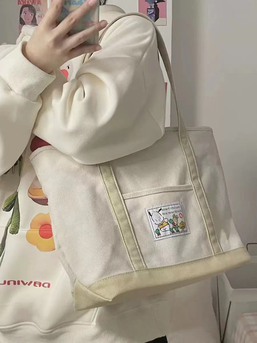 帕恰狗帆布包日系休闲单肩手提托特包百搭简约学生上课大容量女包