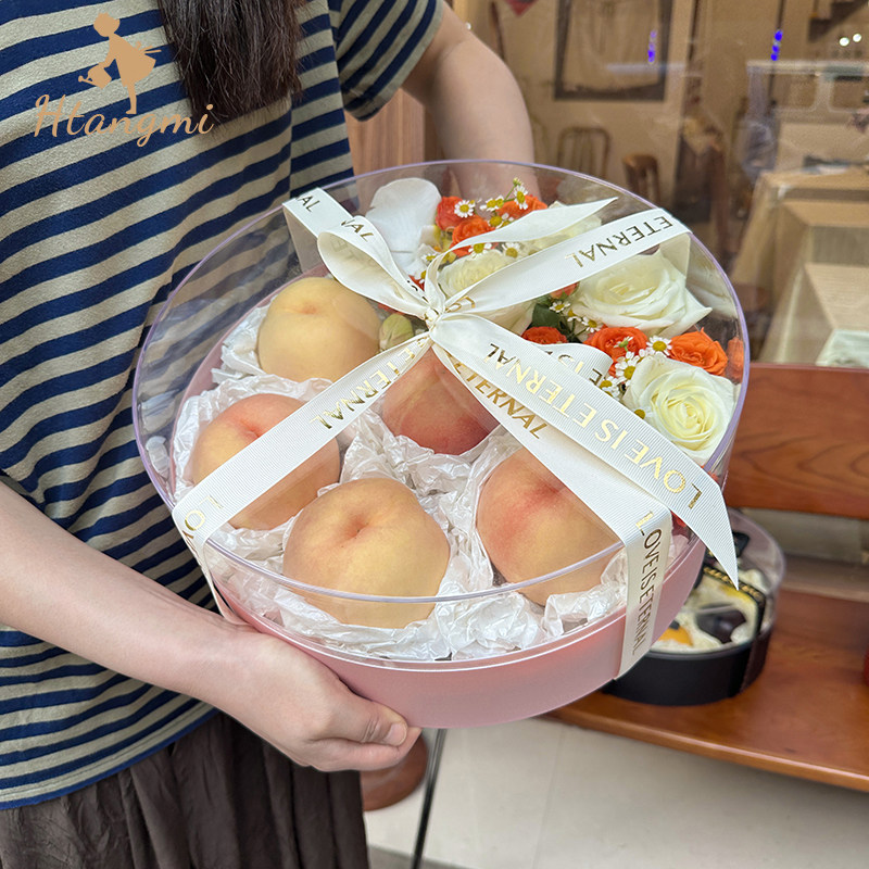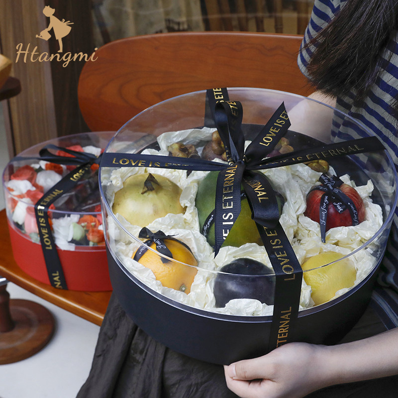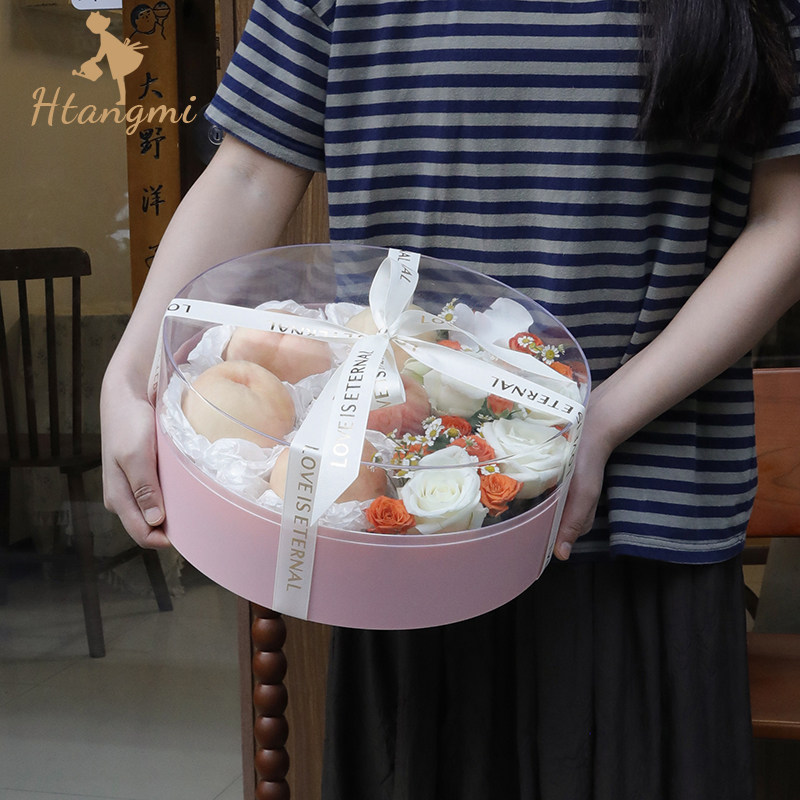 汉唐美全景透明圆形鲜花水果礼盒仿亚克力花盒高档生日礼物盒空盒