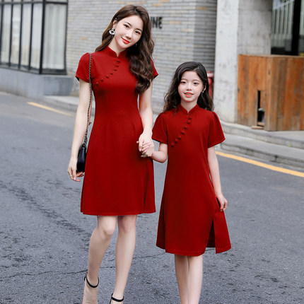 高端亲子装母女装中国风复古洋气旗袍2021新款改良礼服连衣裙夏装