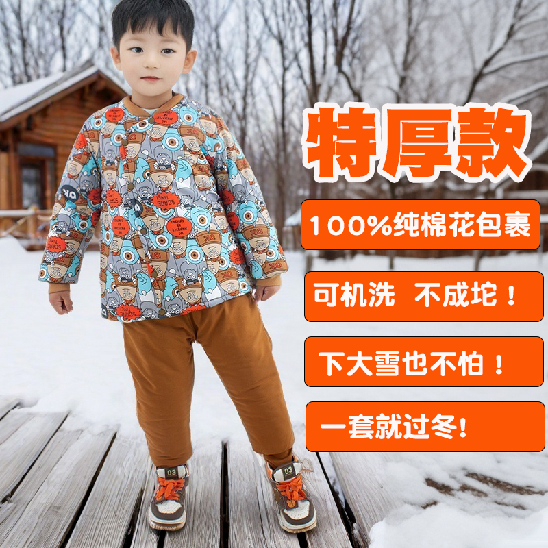 【100%纯棉花】宝宝手工加厚棉花棉衣冬季中小童分体棉袄棉裤套装