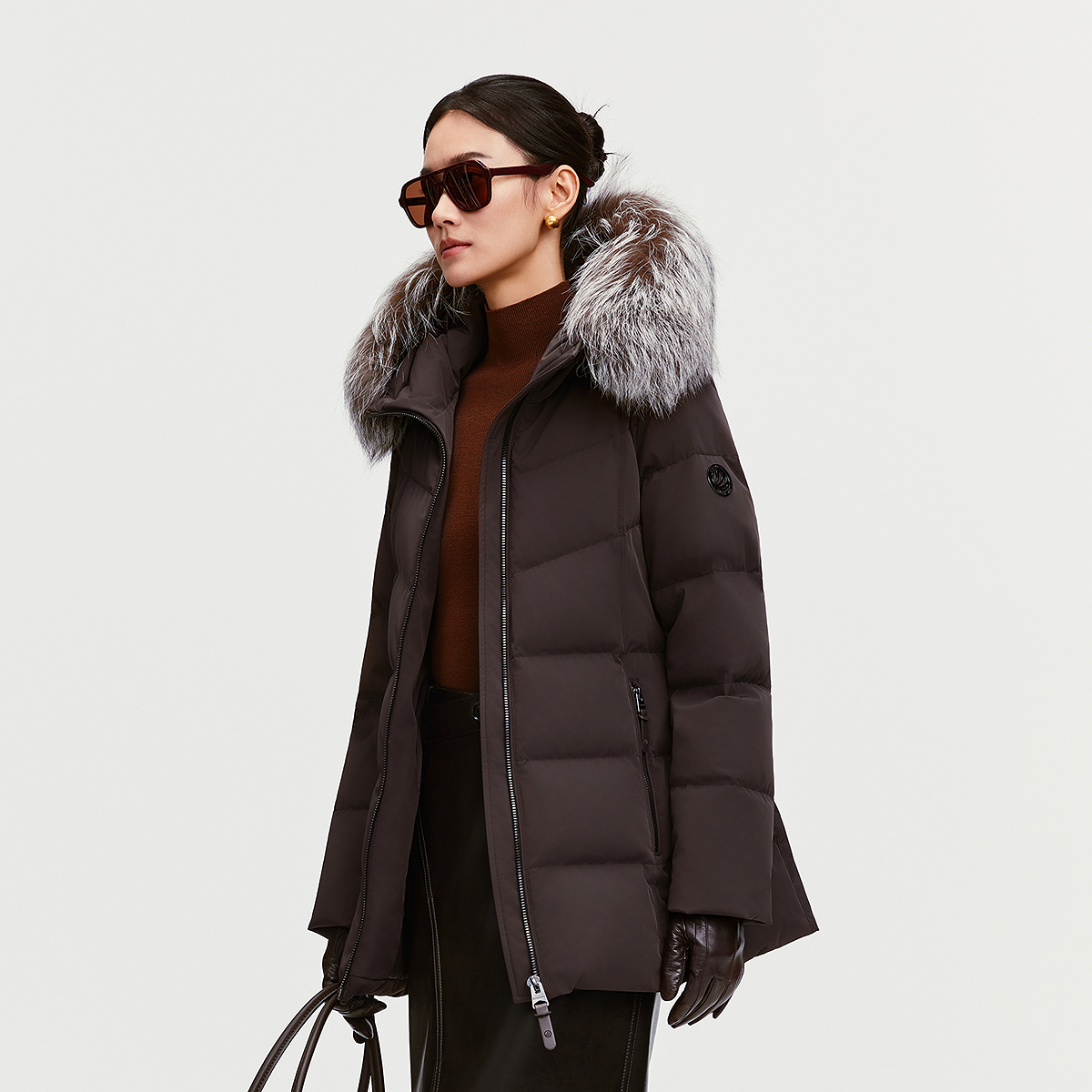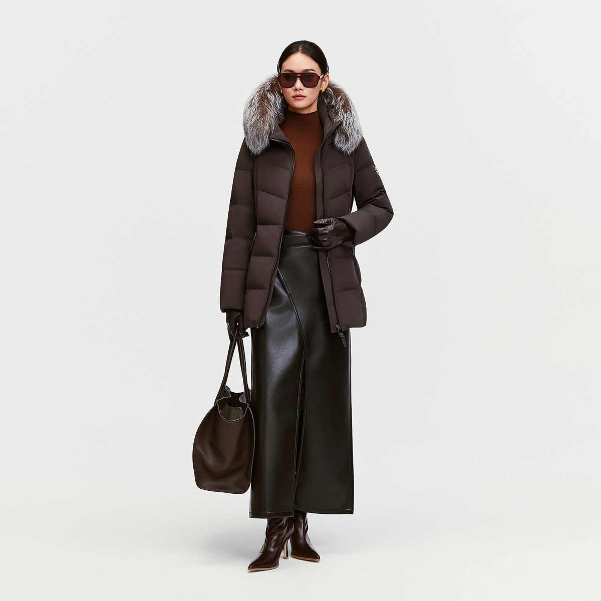 波司登25新款羽绒服女高端商务大毛领中长款收腰显瘦保暖90鹅绒