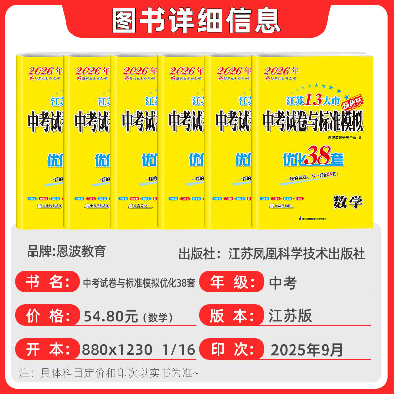 备考2026】恩波38套江苏省十三大市中考试卷与标准模拟卷语文数学英语物理化学2025年江苏中考13大市优化38套初中初三总复习真题卷