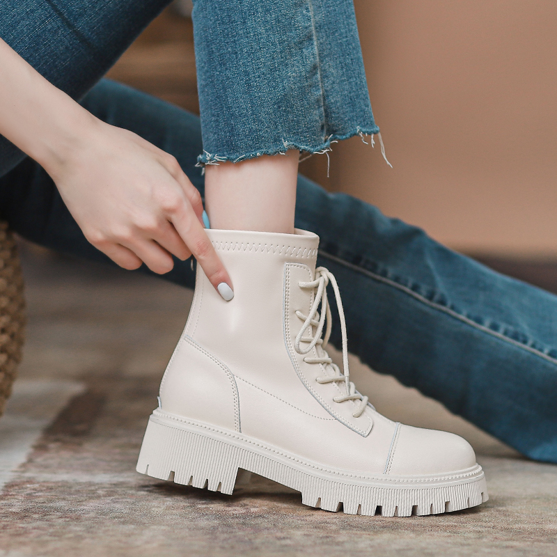 真皮白色马丁靴女2025秋冬季新款英伦风单靴厚底加绒系带爆款短靴