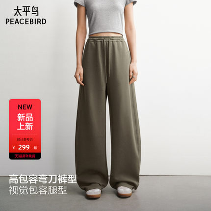 太平鸟茧型弯刀针织休闲裤26春款咖色宽松显瘦香蕉卫裤运动裤女