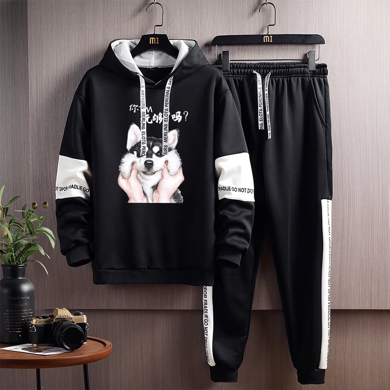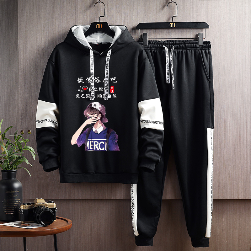 秋冬季休闲运动服套装男生韩版潮流学生青少年加绒加厚连帽卫衣