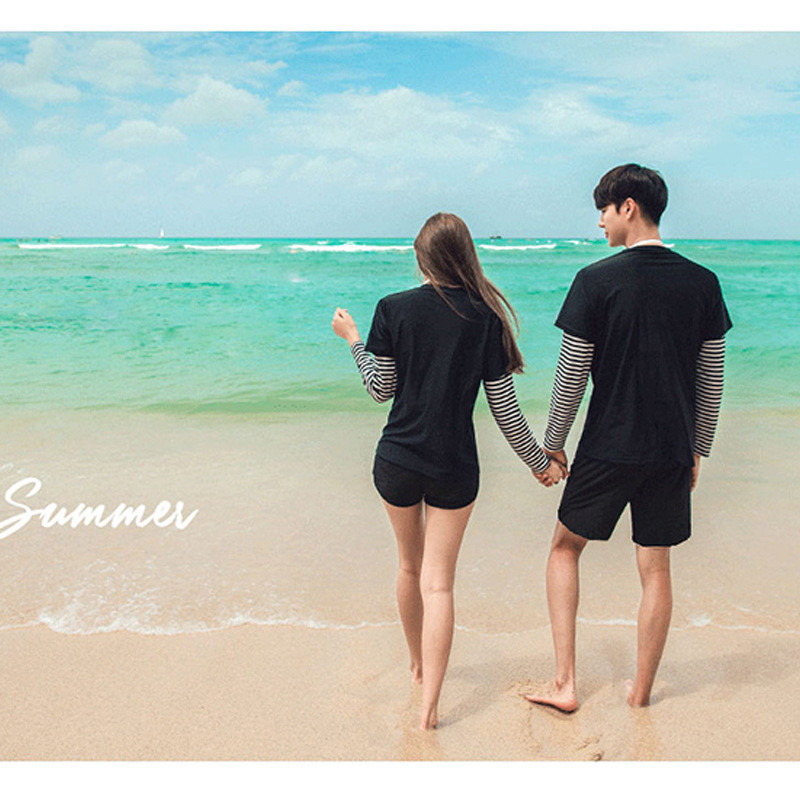 新款分体四件套潜水服 韩版时尚沙滩浮潜衣情侣防晒长袖泳衣