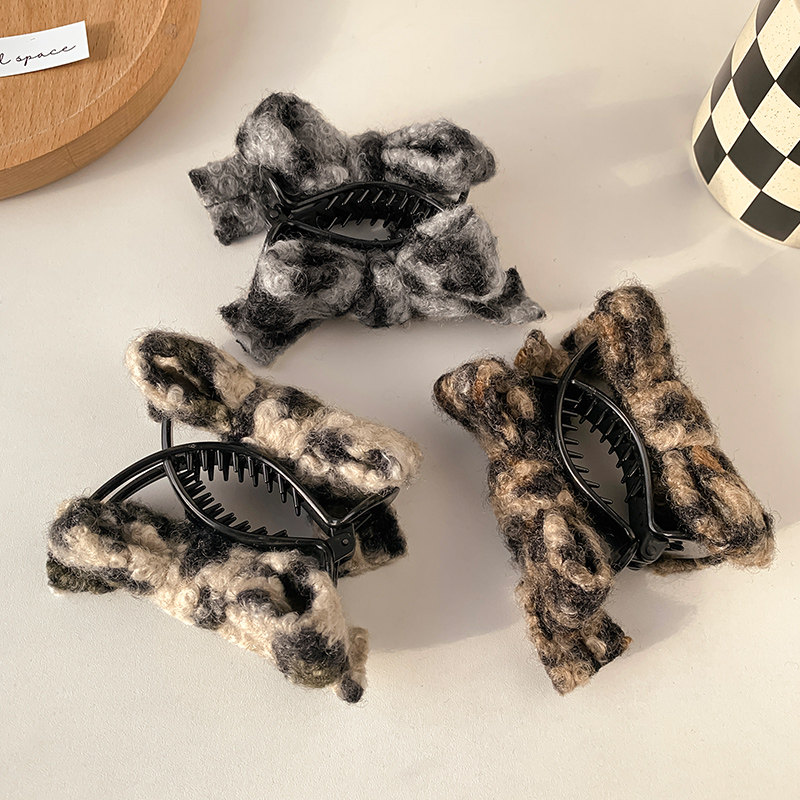 高颜值豹纹丸子头抓夹后脑勺盘发固定神器秋冬发抓夹子高马尾发夹