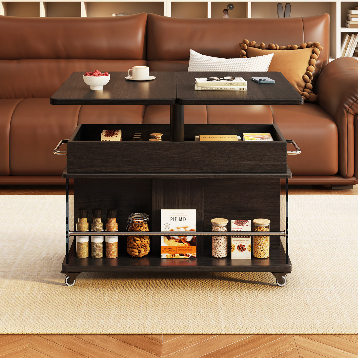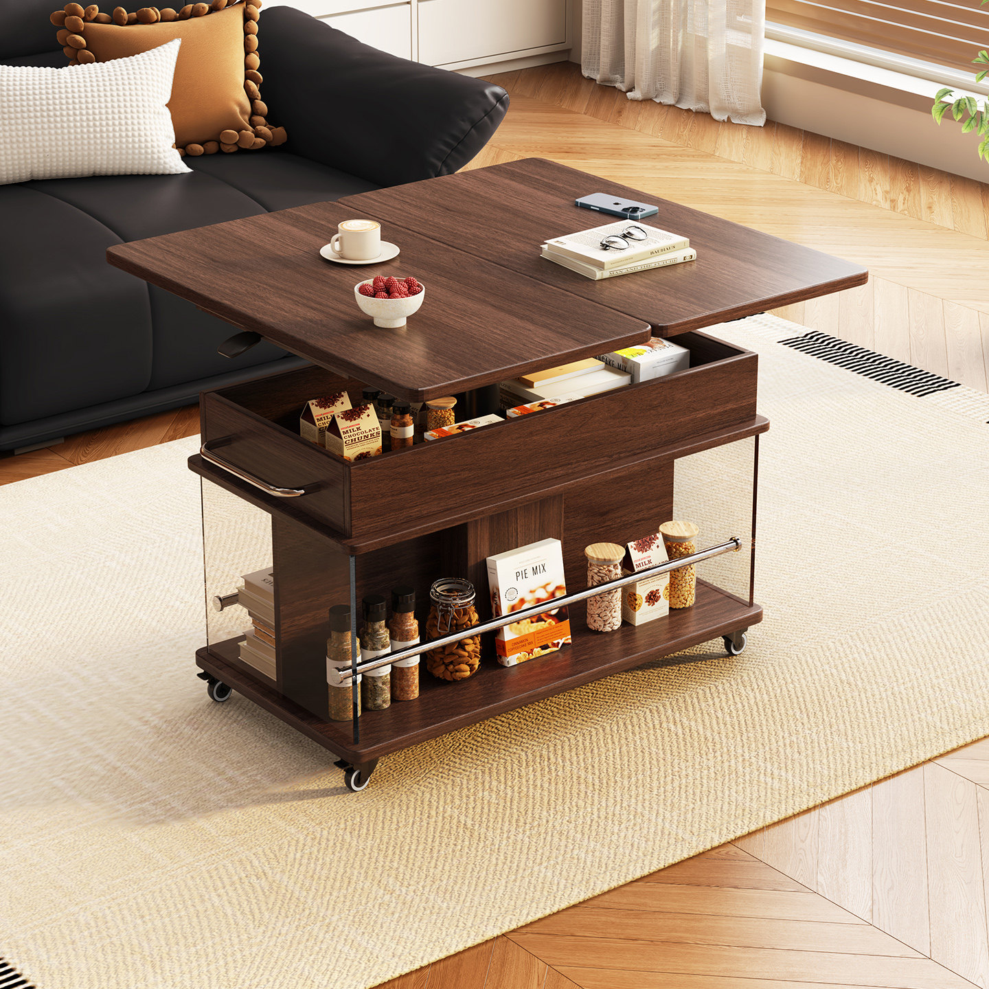 实木移动升降展开户型沙发边几小