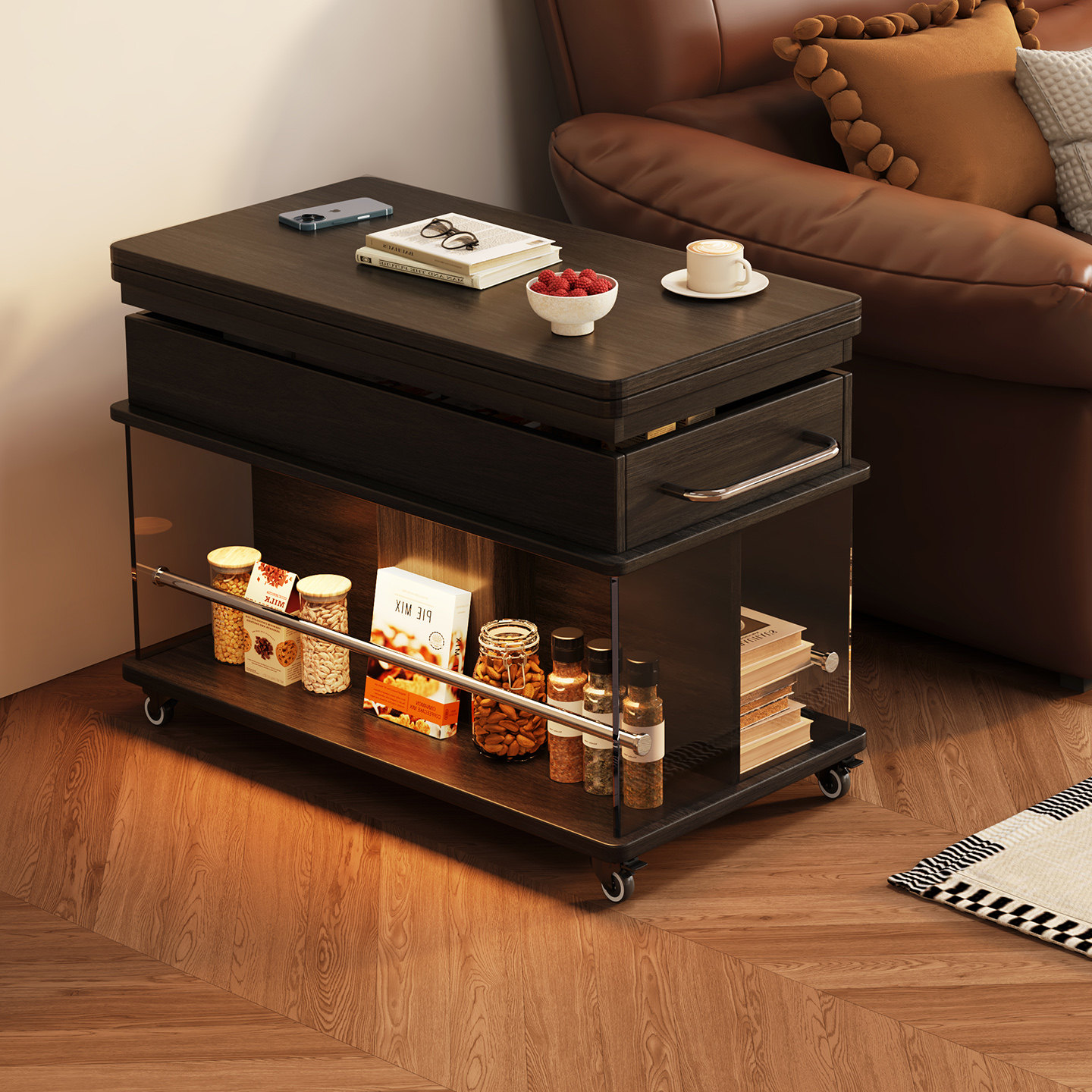 语木小森移动边几沙发边柜多层储物收纳置物架小户型茶几实木边几